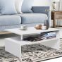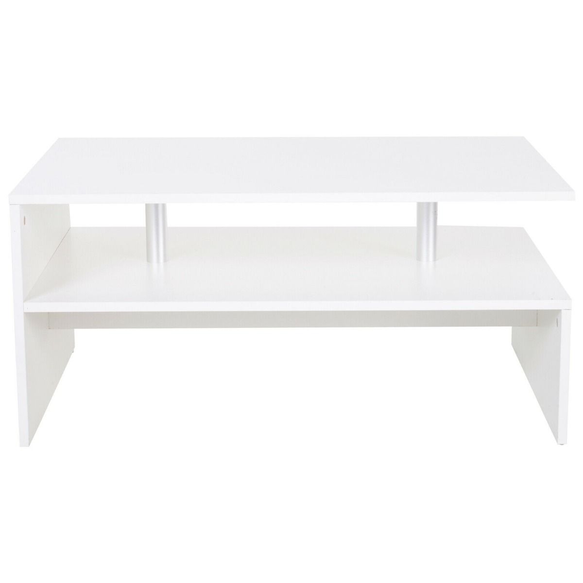 Take the modern approach this season to storage and display with this coffee table. Using particle board for the main body to withstand every day use. It is crafted into a two-tier design, allowing you to discreetly store anything you want out of sight on the bottom shelf, whilst displaying anything you want to be seen on the top, with two aluminum cylinders for additional support.