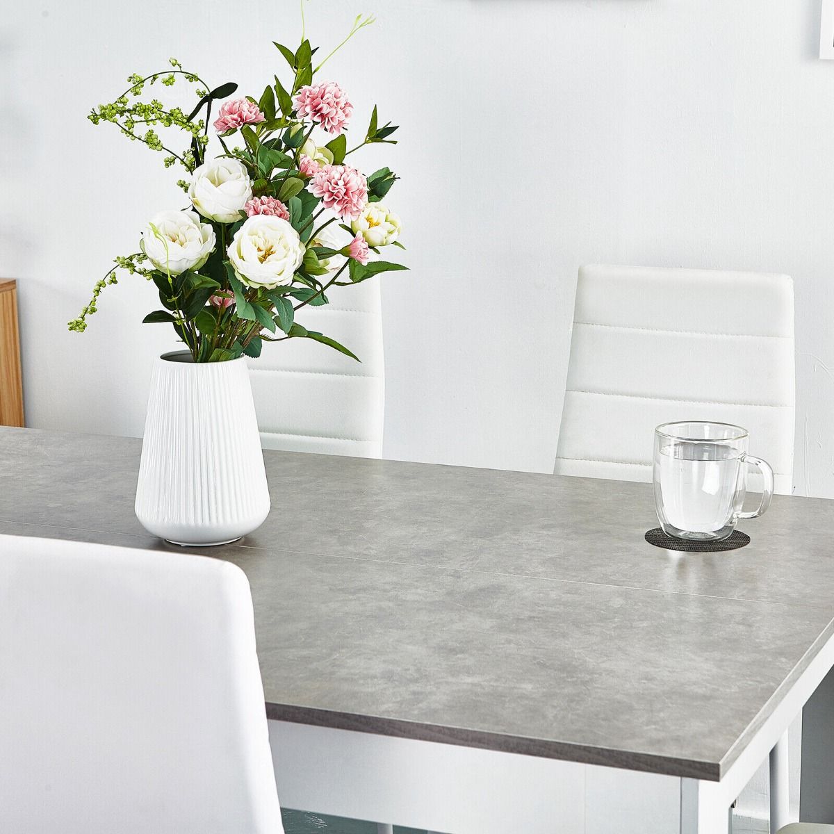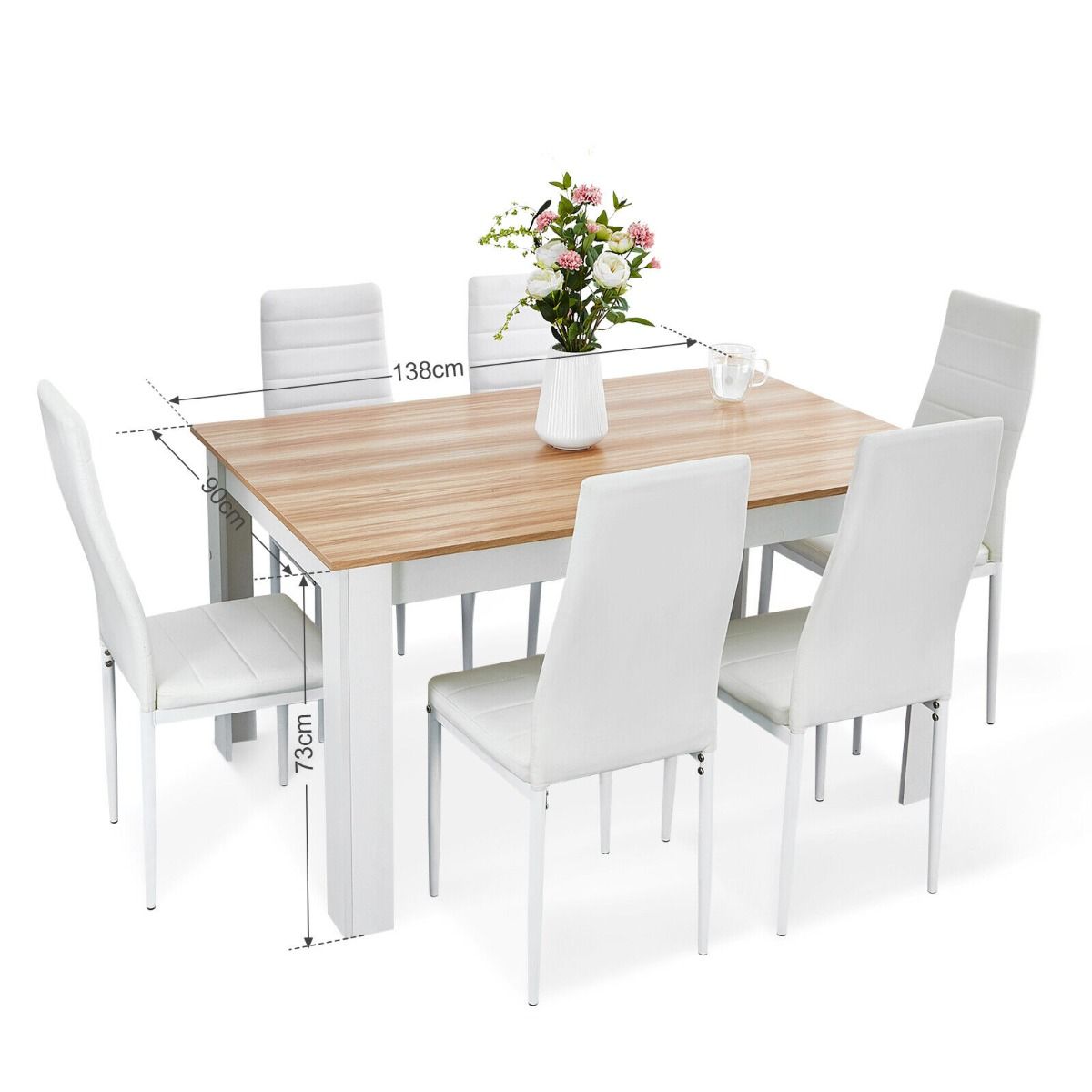 - Sturdy and Durable: Our dining table boasts a robust and stable structure, thanks to its high-quality particle board construction. The chairs are supported by sturdy metal frames, covered in waterproof artificial leather, ensuring longevity and easy cleaning.