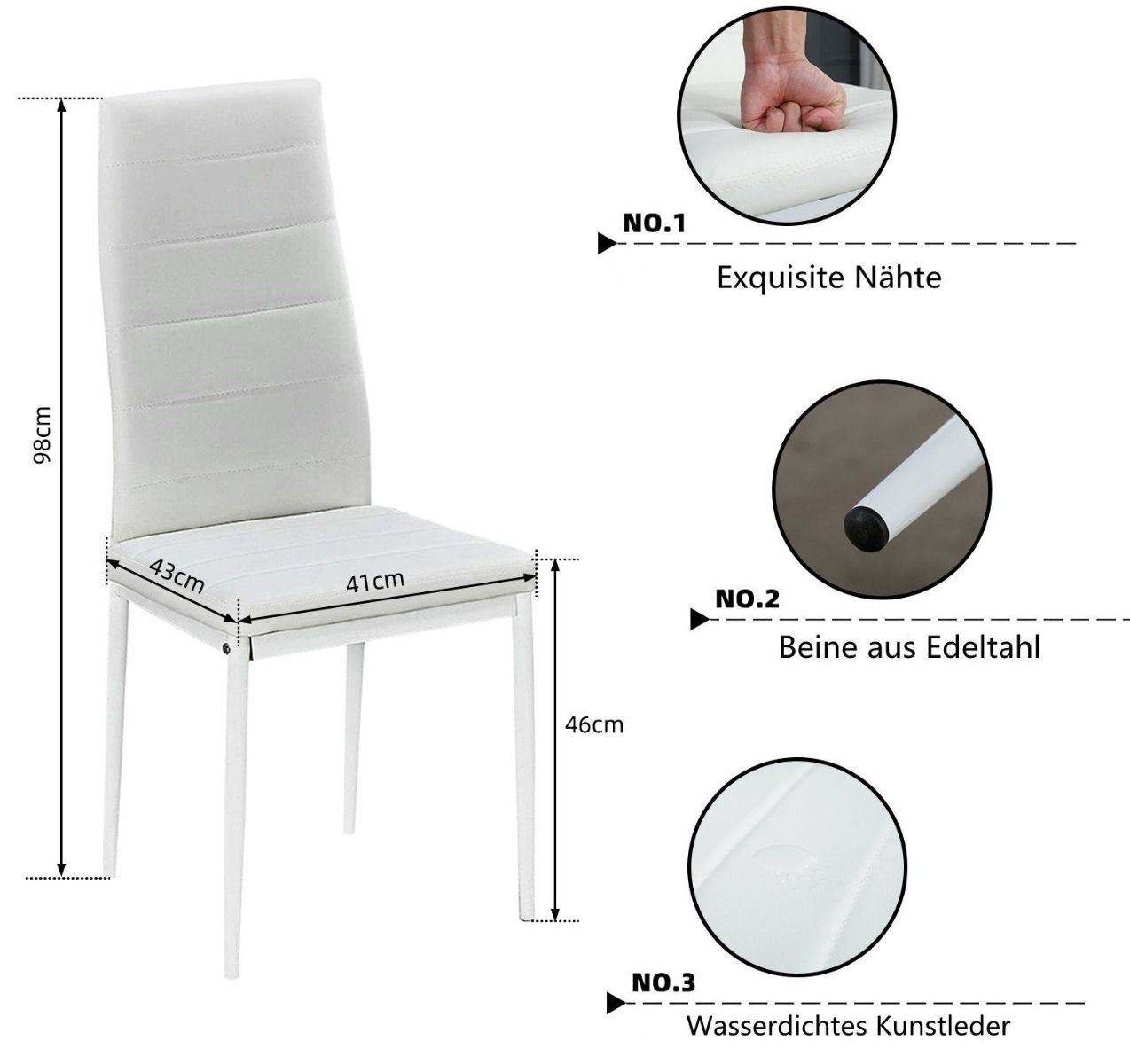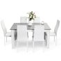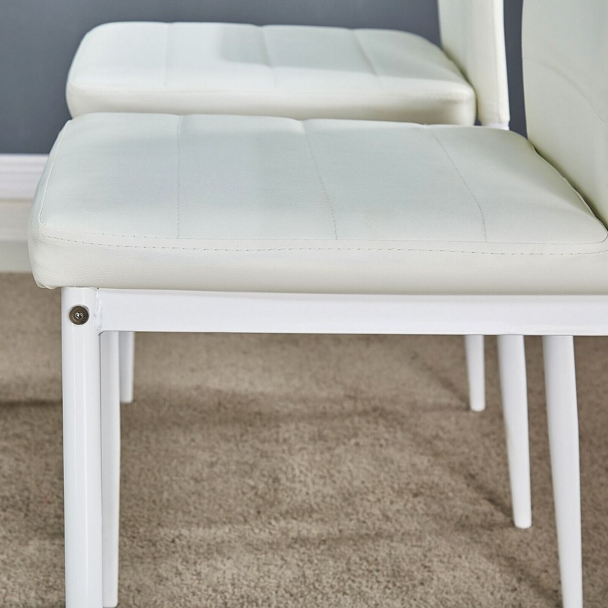 Modern Dining Table Set with Faux Leather White Chairs - 5 Optional