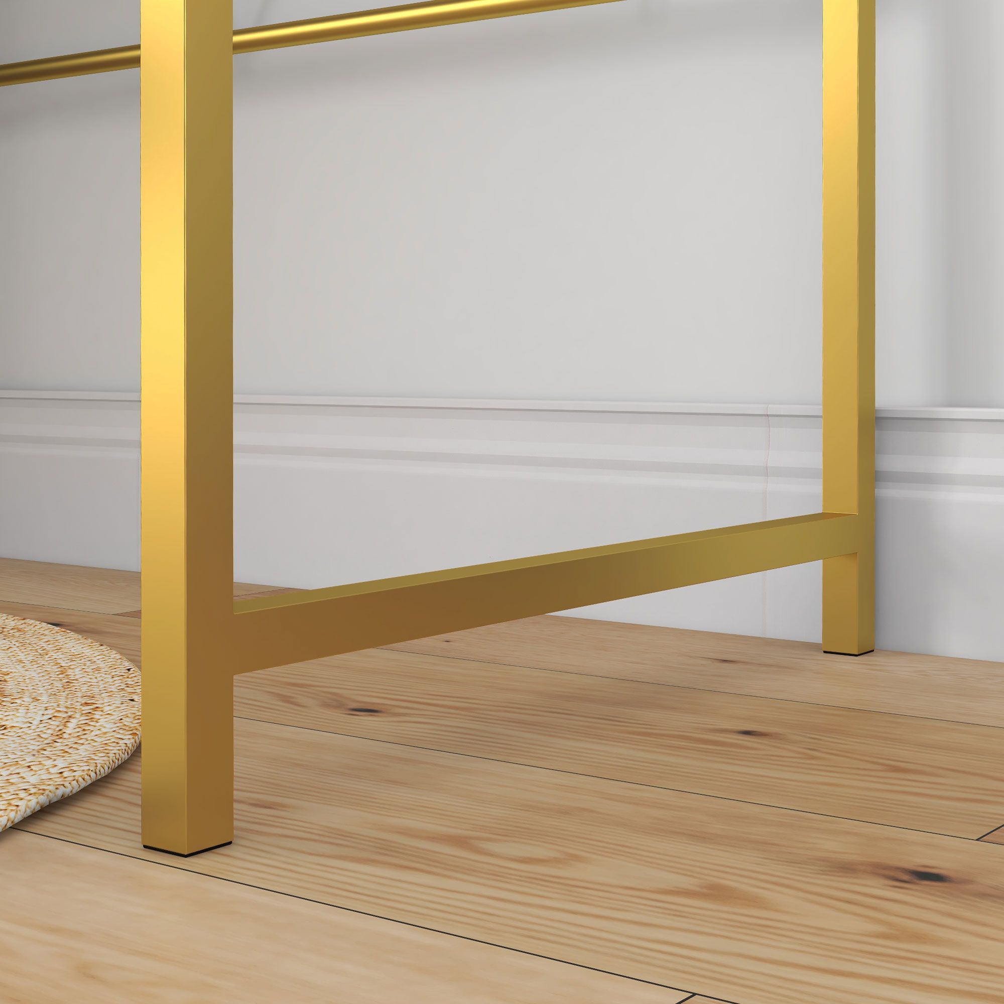 - ELEGANT DESIGN: It's a great addition to your bedroom and the ideal place to get ready every day. The combination of a white faux marble tabletop and golden steel frame provides the table a modern look to your home. The pattern of the reinforced bar adds a touch of contemporary elegance