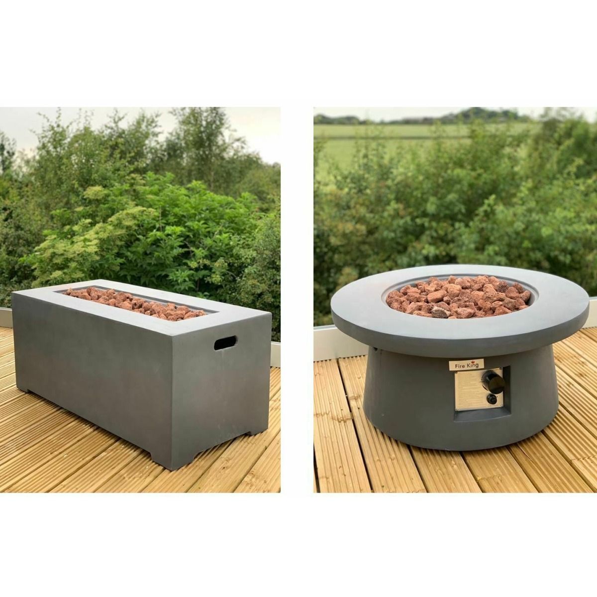 Electronic Ignition Concrete Round and Rectangle Fire Pit Table with Regulator - 3 Sizes