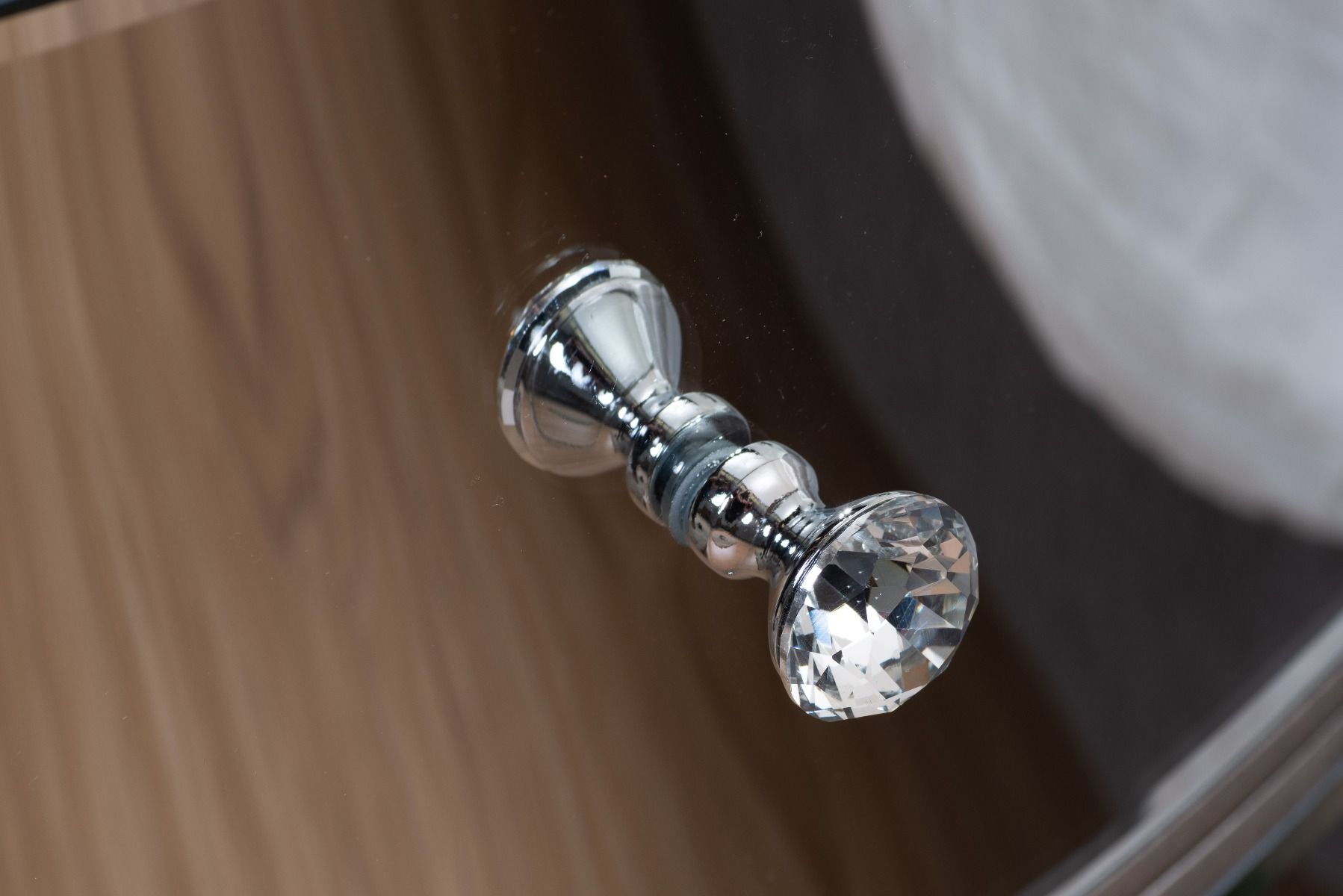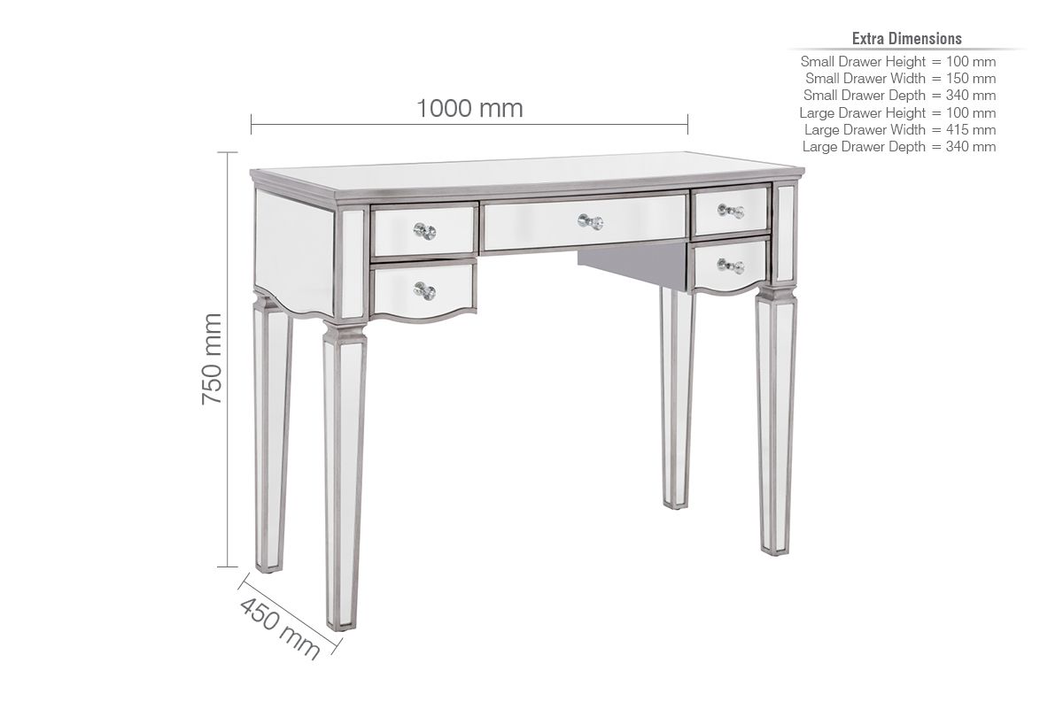 Give your bedroom a sophisticated finish with the Elysee 5 drawer dressing table. Elegantly made this 5 drawer dressing table is crafted in a clean, detailed design with a beautiful glass mirrored finish to provide a sense of space and light even in the dullest of rooms. Complete with crystal handles, this Elysee dressing table features one large drawer, as well as four smaller drawers ideal for storing an array of products. All drawers feature a luxurious velour lining. To complete the look we also offer an Elysee dressing table stool. This versatile range will sit comfortably in a modern or traditional setting making this mirrored furniture a welcome addition to any home. Cleaning and Care: Wipe with dry cloth.