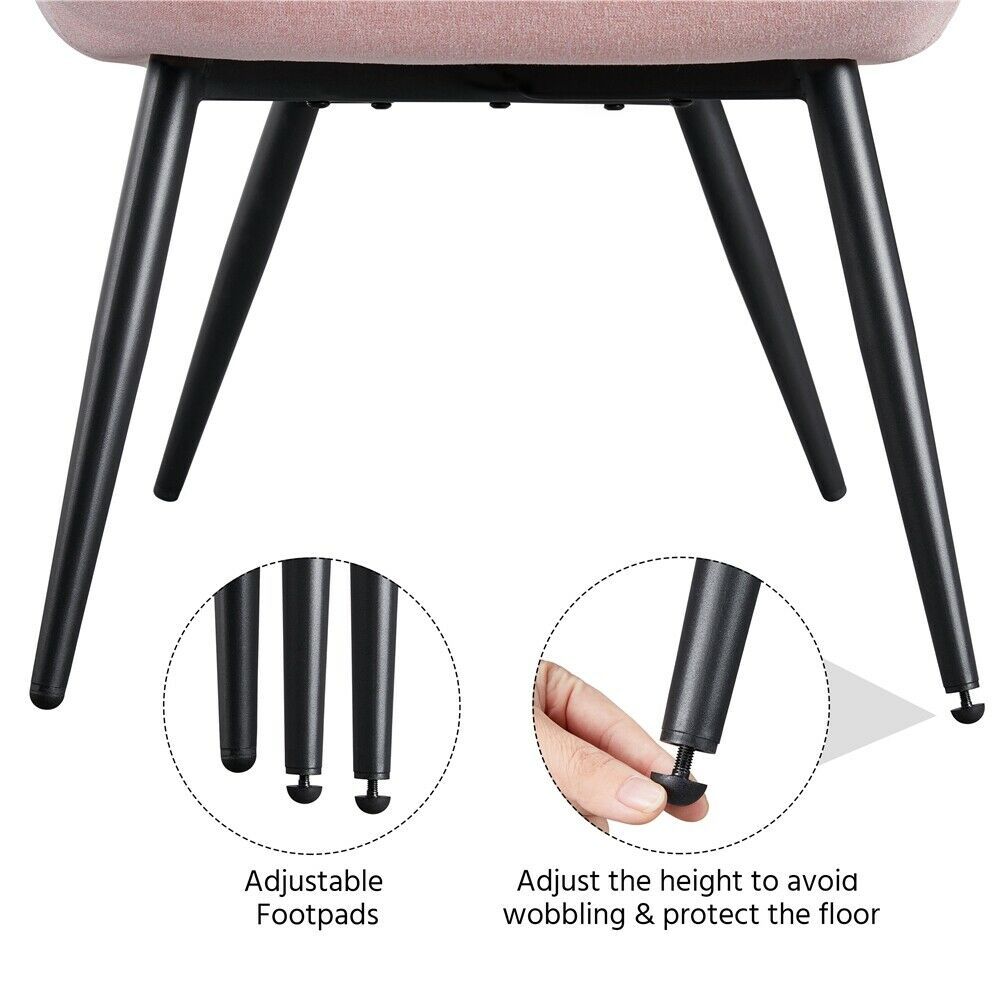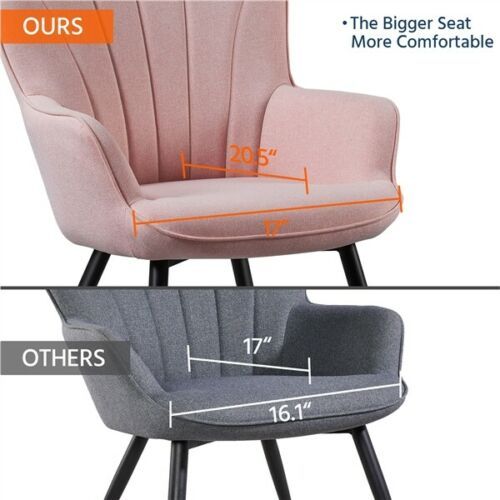 This modern accent chair combines clean lines with the curved back. The soft fabric cover contrasts with the tapered metal legs, creating a simple but inventing tone to your home. The wooden frame and metal legs provide you strong support which could hold up to 125kg. The padded cushioned seat, back and armrest provide you utmost comfort and strong support. The pleated pattern on the fabric backrest added an elegant feeling, this upholstered armchair could be a good addition to the living room, bedroom, dining room, guestroom, home office and restaurant.