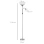 Modern Floor Reading Lamp 2 Adjustable Heads Light Steel Base Living Room Bedroom Office, 179.5cm