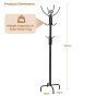 Modern Freestanding Metal Coat Stand with 12 Hooks for Bedroom Entryway-4-Leg Base