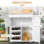 Modern Kitchen Trolley, Rolling Island Storage Cart with Drawer, 9-bottle Wine Rack, Door Cabinets, Wooden Countertop, White