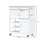 This storage trolley on wheels is an ideal option for your home parties. A handy drawer, 9-bottle wine rack and 3 enclosed cabinets provide ample space for supplies and accessories. Easy-roll wheels allow you to move wherever it is needed most. A two-tone palette naturally is suitable for most home furnishings. Solid rubberwood tabletop and MDF panels ensure durability and easy cleaning of this kitchen storage trolley.