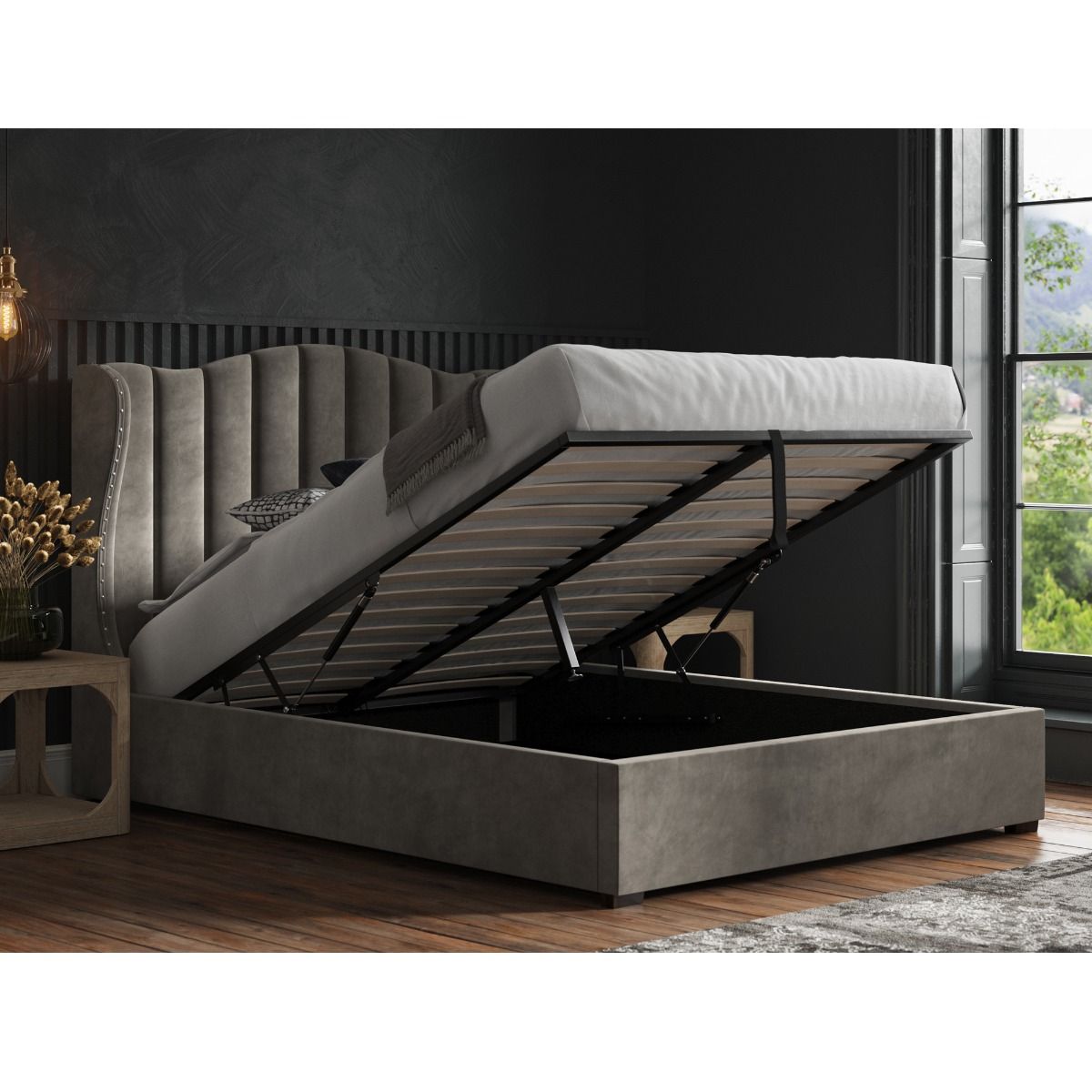 Modern Luxury Redefined Martinsville Ottoman Sleigh with Gas Lift Storage Kingsize Bed - Mid Grey Velvet