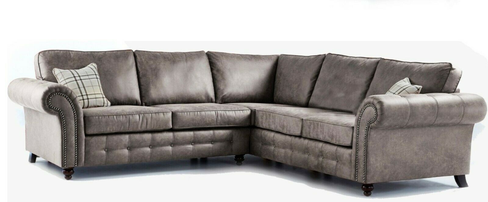 The Oakland Corner sofa set. The sofas boasts luxury in its name, with deep filled foam and pocket sprung seats this sofa set is sure to impress. The Oakland is available in a choice of colours either Brown or Black. The Oakland range is perfect for any budget. The sofa boasts studded arms and deep filled foam seating cushions for great comfort so you can sit back and relax. Soft Bonded Leather is a perfect way to keep your evenings comfy and your days fresh! The sofas are available to buy as sets in either brown or grey.
