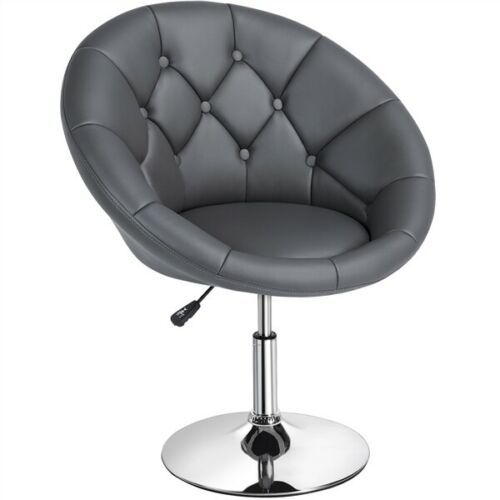 HEIGHT ADJUSTABLE: The seat height can be adjusted from 32cm/12.6" to 46cm/18" through a simple push/pull of the lever beneath the seat. The SGS-certified pneumatic cylinder is adopted to ensure your adjustment safety. 360-DEGREE SWIVEL CHAIR: The faux-leather wrapped round seat is founded atop a posh 360-degree swivel pedestal base, which allows effortlessly sitting, leaving the seat and changing sitting position without moving the base, especially practical in workspace and kitchen counter. ELEGANT ADDITION TO ANY ROOM: Defined by its classic button-tufted design, this accent barrel chair is a fine fit for any high-class aesthetic. The adjustable height spans 12.6''/32cm to 18''/46cm tall, so you can easily pull it to your vanity table or 29- or 30-inch-tall eating counter. Simple Assembly required this barrel chair comes in 4 parts, and tools, hardware and a step-by-step instruction manual are also included. It only takes you a few minutes to set up. Easy Cleaning water-resistant PU leather surface and rustproof chrome finished pedestal base can be easily wiped clean with a damp cloth and mild cleansers.