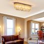 Modern Raindrop Crystal Chandelier, Round Rectangular Pendant Ceiling Light, Linear Hanging Lighting with Stainless Steel Base, Silver