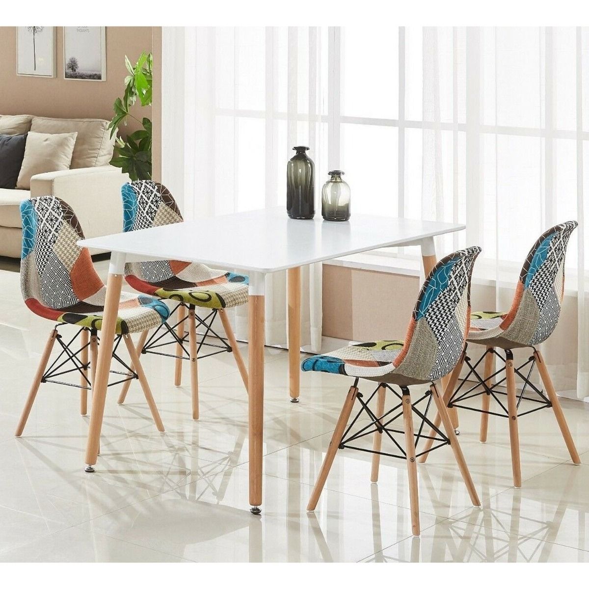 Two stunning pieces are combined in this exclusive dining set, which is entirely customisable by you. The Patchwork Eiffel Chair meets the Halo Table to deliver a stylish dining experience, so grab the family and gather round - dinner is served! The Patchwork Eiffel Chair, created and manufactured by our own design team, offers a practical and modern seating solution to your home. With a bright patchwork finish and sleek moulded design, the Patchwork Eiffel will make a fantastic conversation-piece in your home. Made from premium quality materials, the chair delivers superior comfort and durability making it perfect for everyday use. The Halo Table was introduced to compliment our wide range of dining chairs and is versatile enough to be paired with different coloured chairs to really make a bold statement in your home or office. The solid wooden legs feature floor protectors to avoid scratching your floors. Made from premium quality materials delivering a durable table perfect for everyday use.