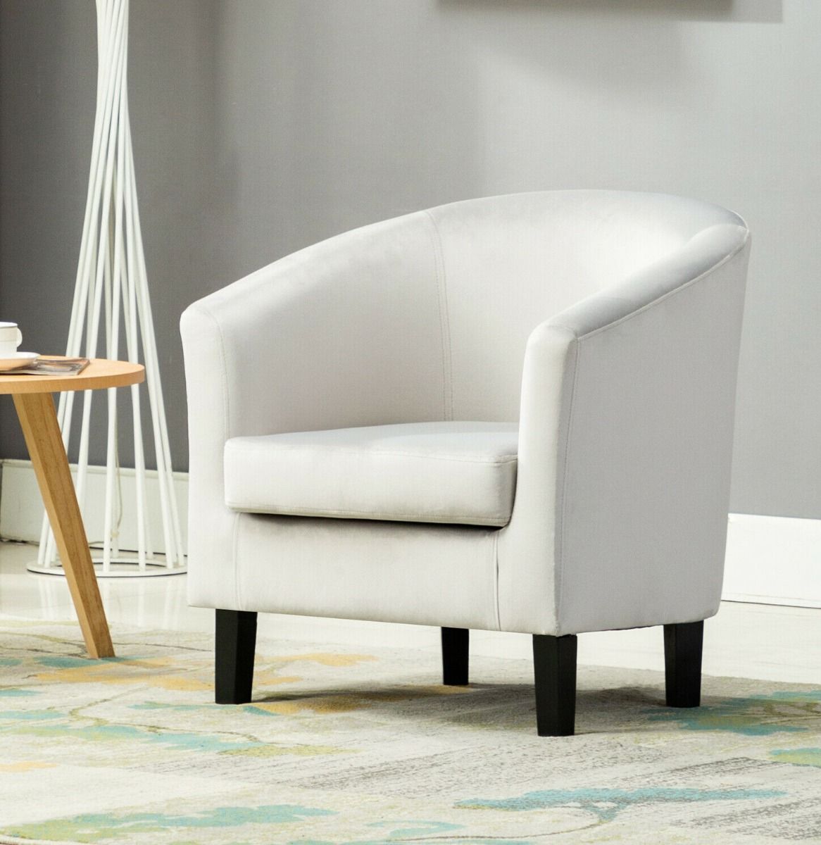 Modern Retro Design Wooden Legs Velvet Fabric Dining Tub Chair - 4 Colours