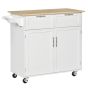 Modern Rolling Kitchen Island Storage Kitchen Cart Utility Trolley with Rubberwood Top, 2 Drawers, White