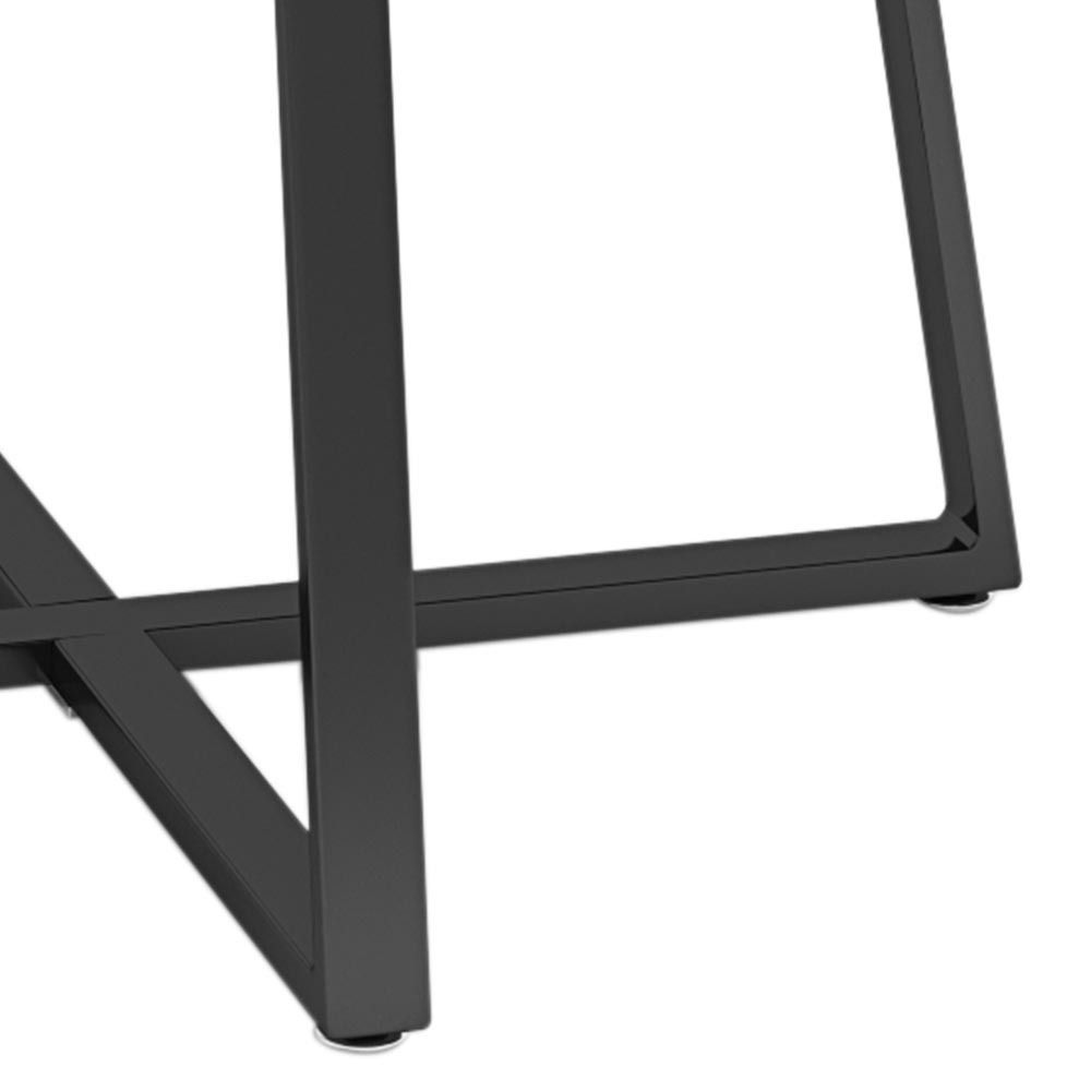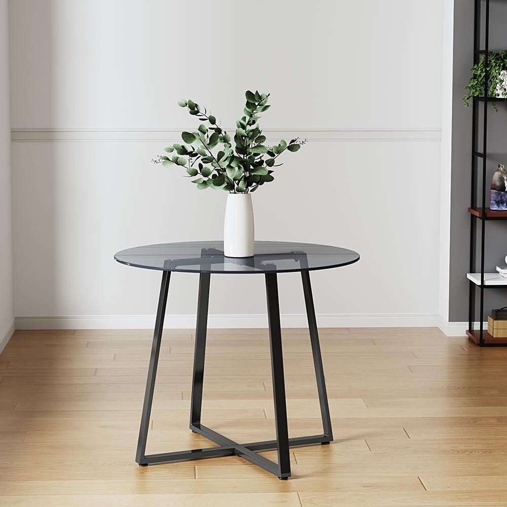 Featuring a heavy-duty metallic base with a unique crossed design and a durable tempered glass tabletop. Its contemporary color palette and simple silhouette effortlessly complement your existing home decor. The smooth tabletop ensures easy cleaning, while its inviting design is perfect for gatherings with friends.