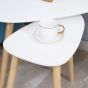 - Scandi style: White table top with natural-finish wooden legs create a simple look - these two side tables are bang on trend. Beautiful nest of tables which look great all over the home and office.
