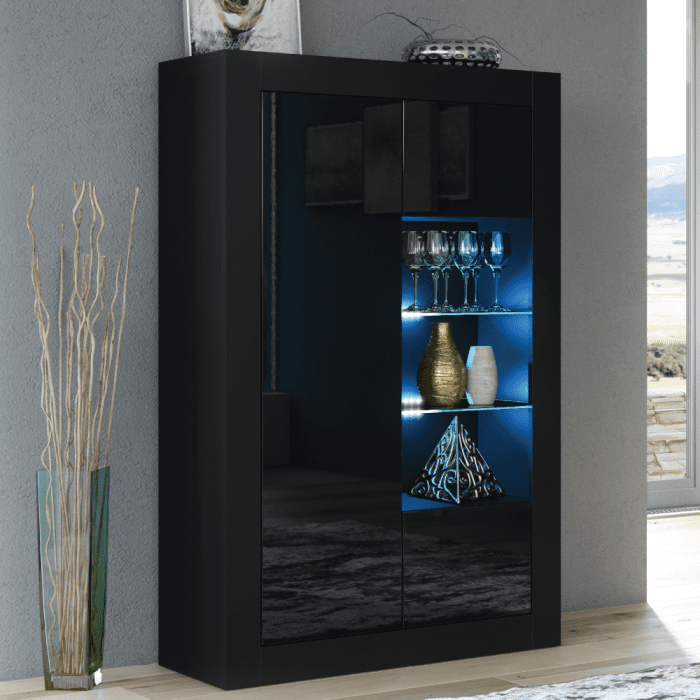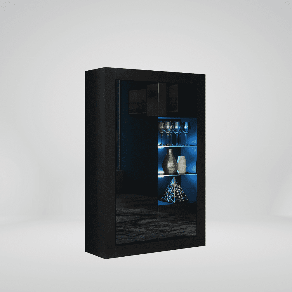 Modern Sideboard Cabinet with High Gloss Doors and Free LED 140cm - Black