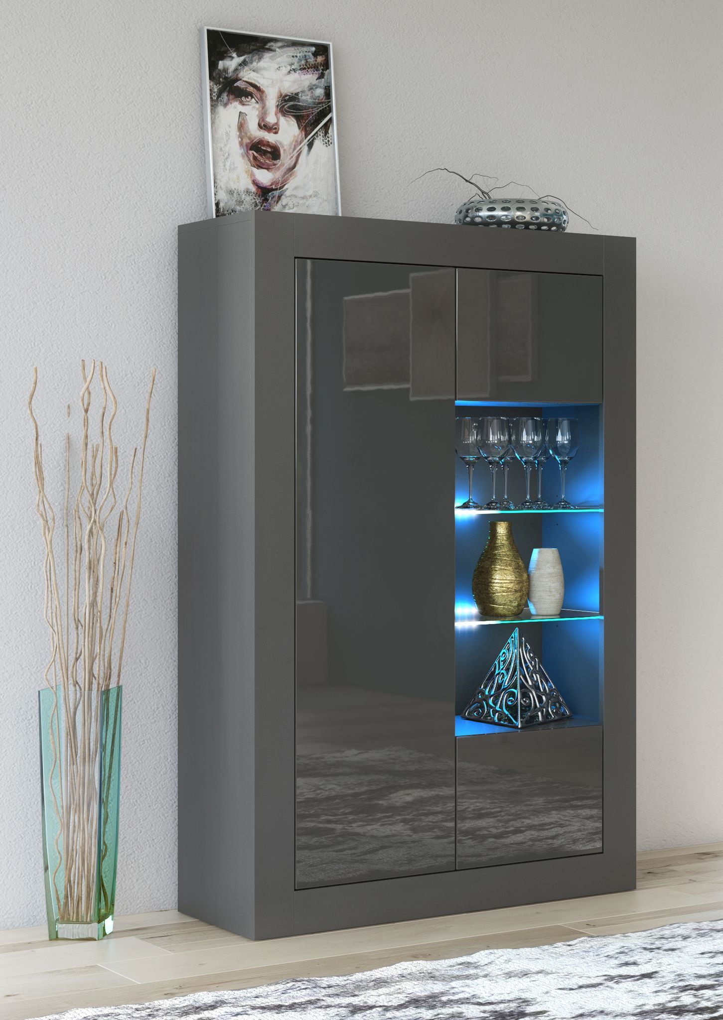 Modern Sideboard Cabinet with High Gloss Doors and Free LED 140cm - Dark Grey