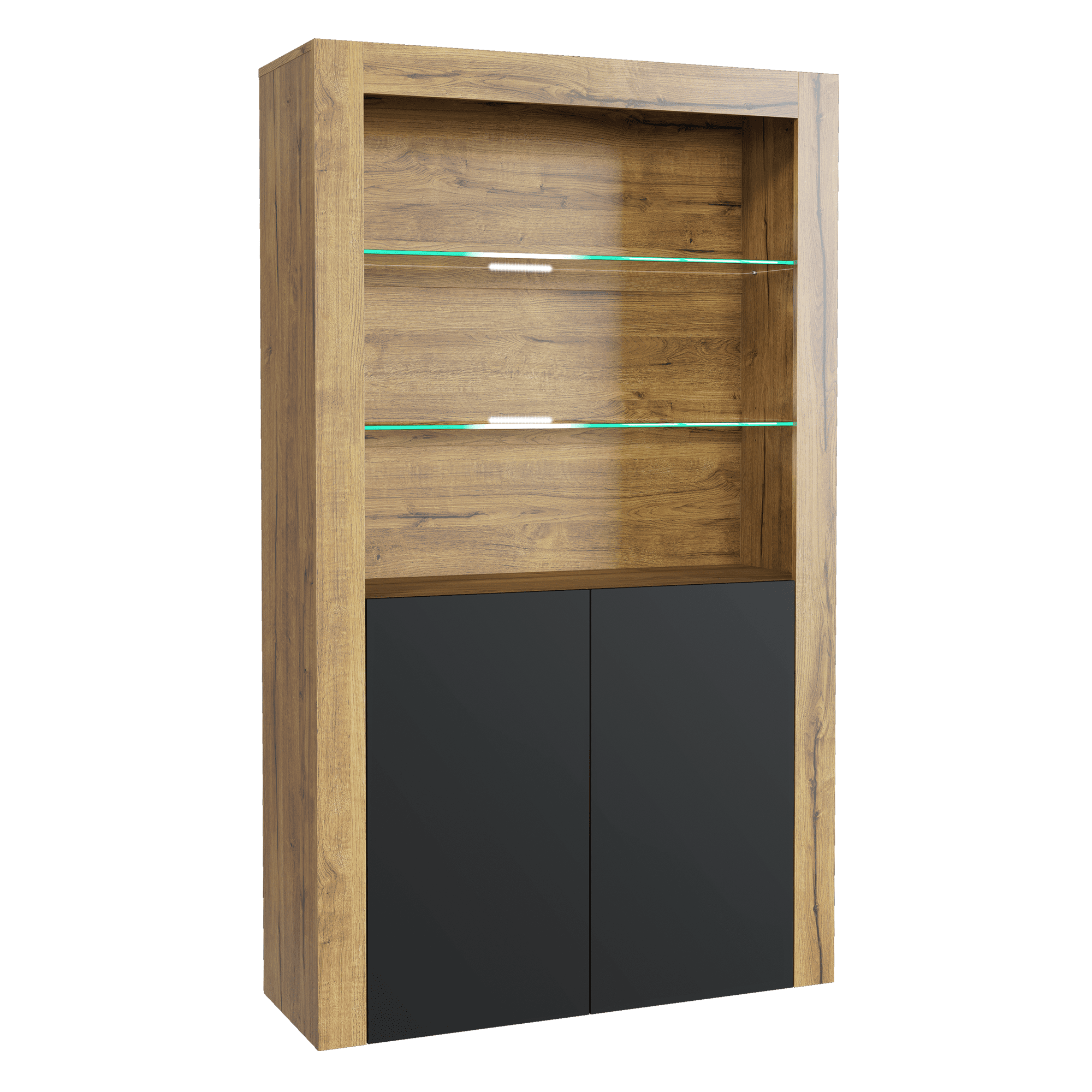 Modern Sideboard Cabinet with Storage and Free LED 170cm - Oak and Black