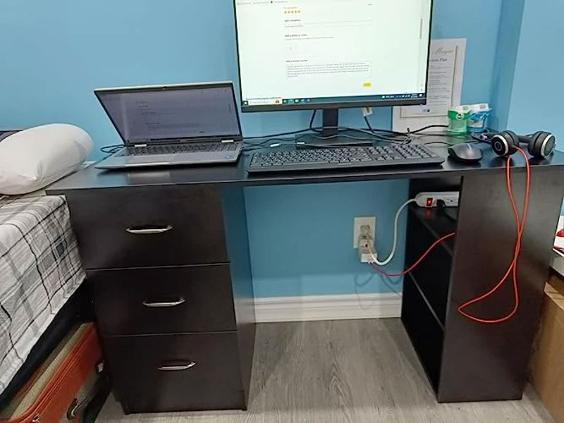 - 3-Tier Shelves & 3 Drawers: This home office desk features 3 drawers for storing your office essentials. 3 open shelves provide extra space for displaying your favourite items. The drawer can be installed back or forth according to your needs, which makes the open shelf can be on the left or the right side