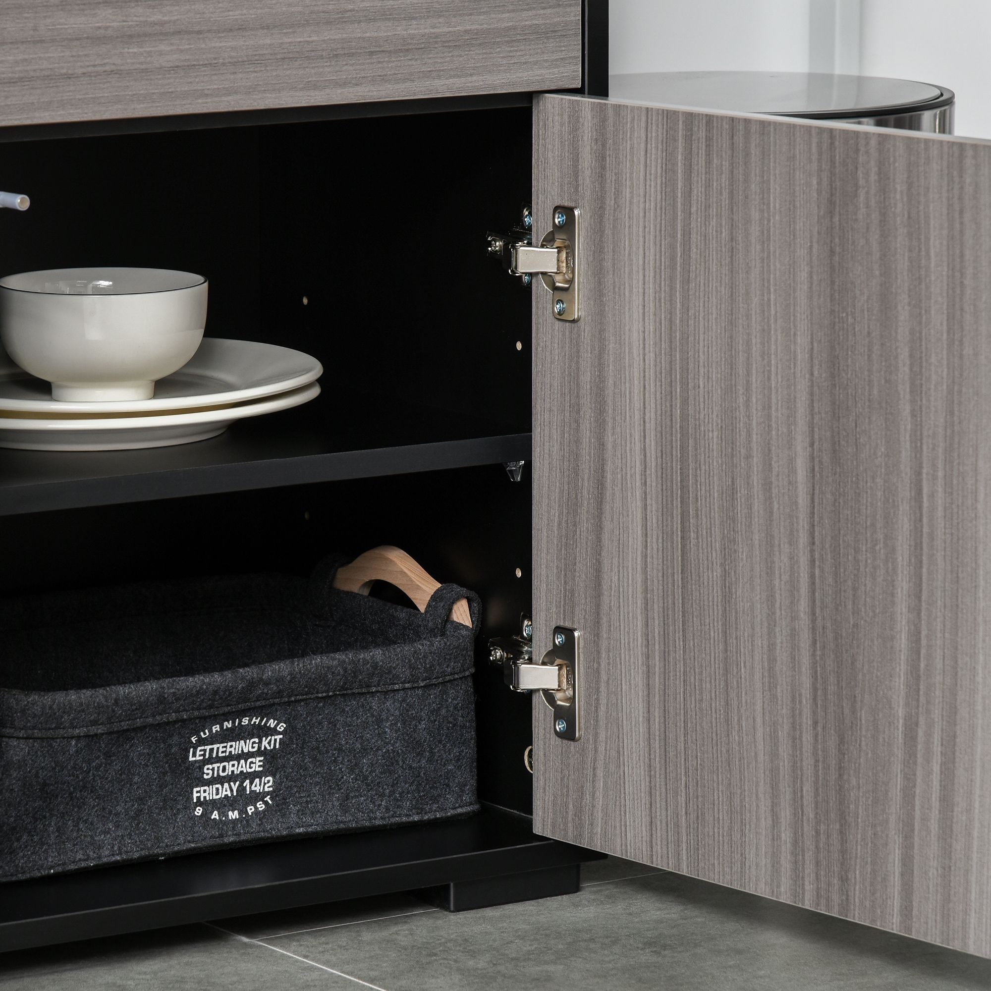 - MULTIPLE STORAGE COMPARTMENTS: Features two drawers and two cabinets, giving you plenty of room for keeping plates, boxes and more discreetly stored. Small cabinet features an three-level adjustable shelf.