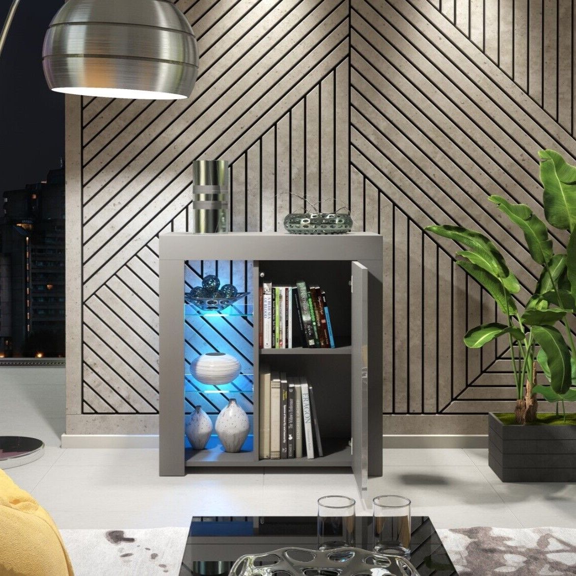 Modern TV Stand Sideboard Cabinet with Free LED Lighting 75cm - Dark Grey