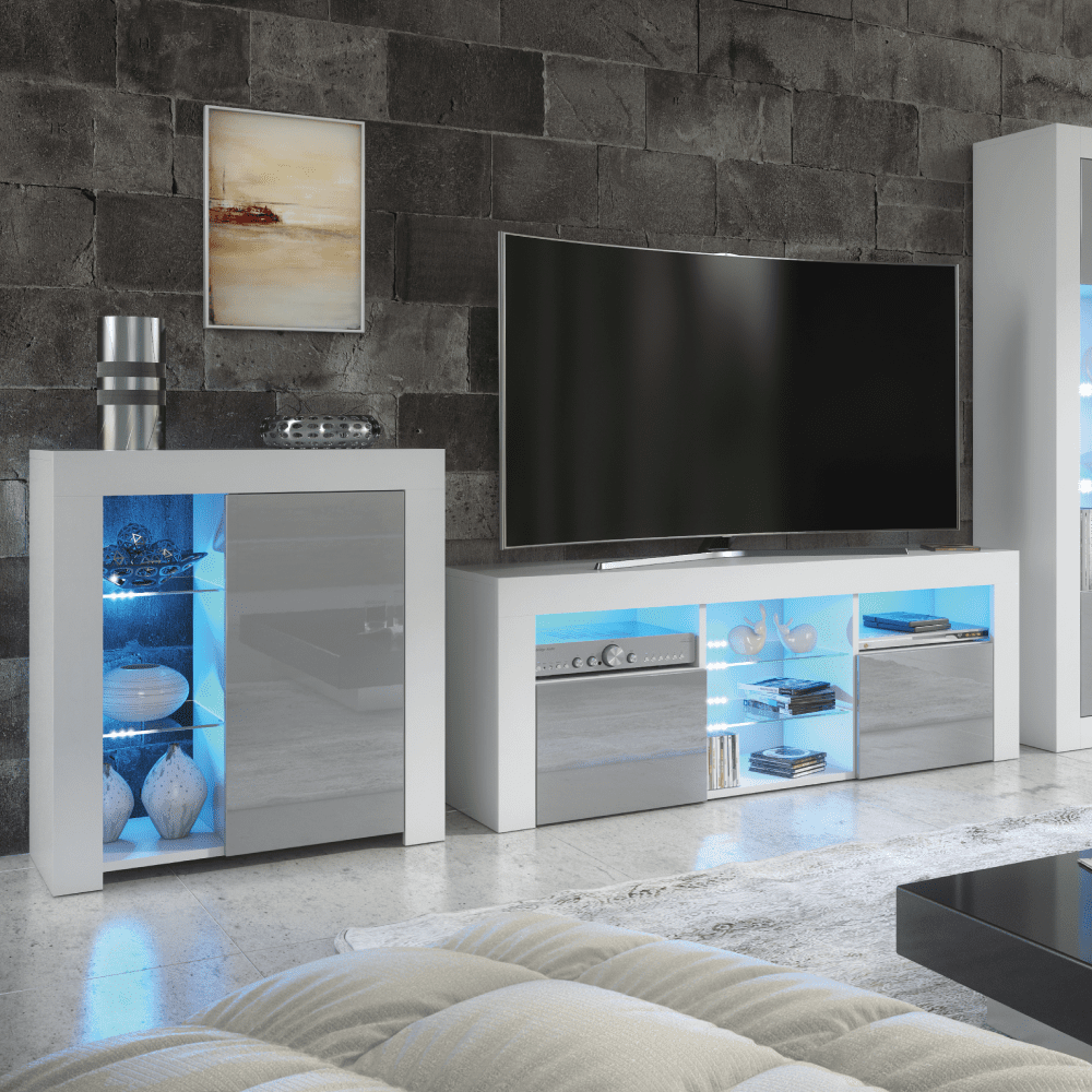 Modern TV Stand Sideboard Cabinet with Free LED Lighting 75cm - White and Grey