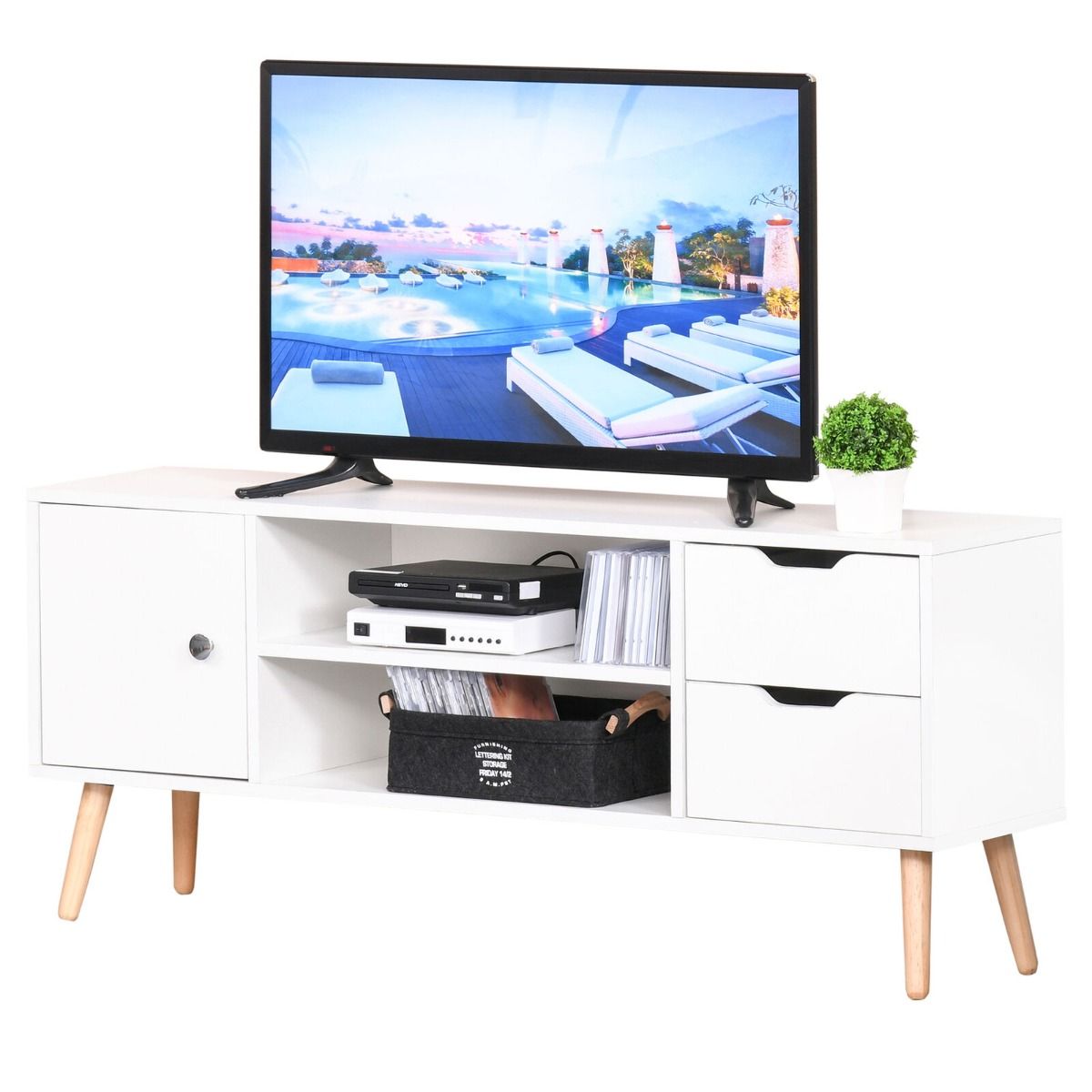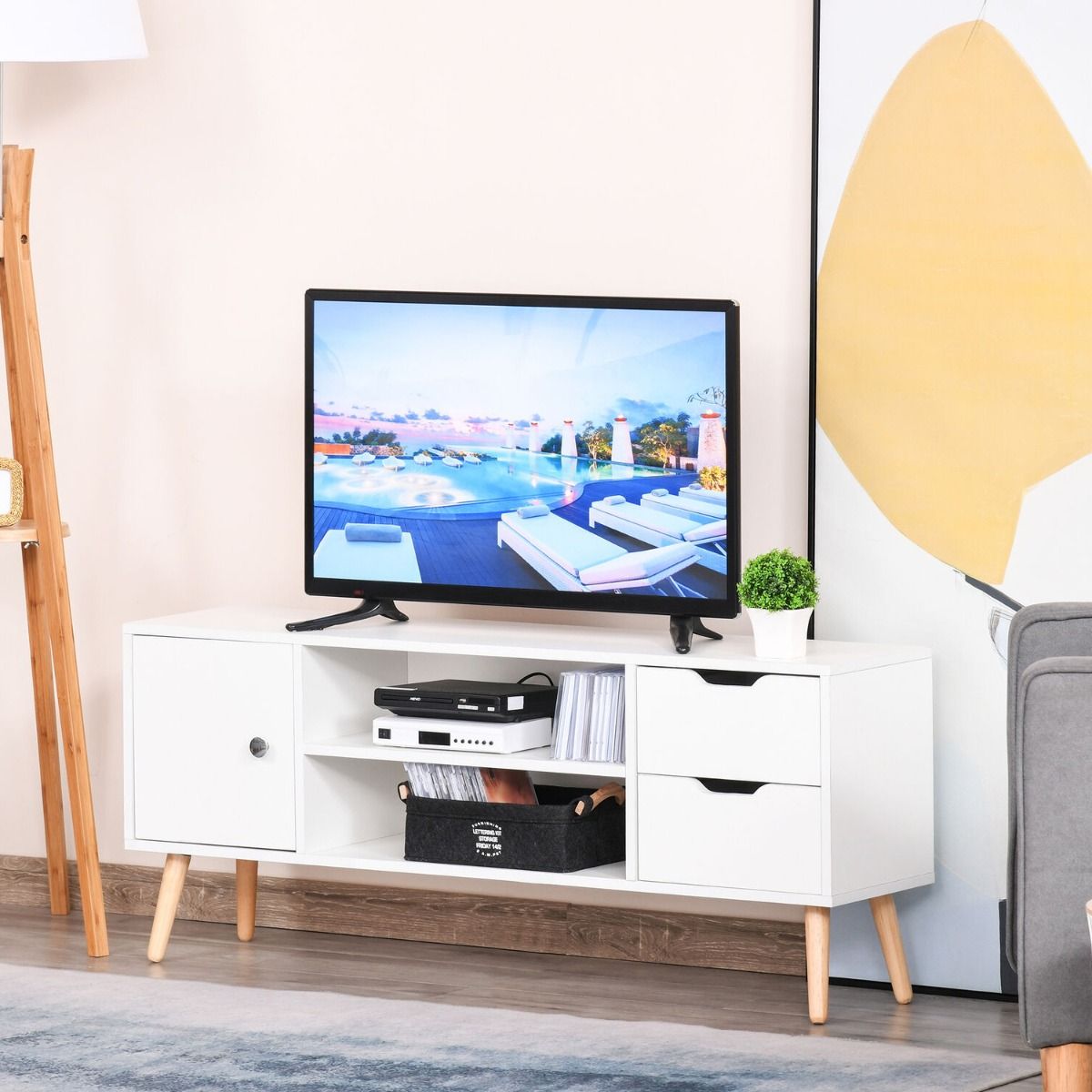 Create a stylish and modern centrepiece in your living room, which your TV will stand proud on, thanks to this Scandinavian-style media stand. Made from durable particle board, it can effortlessly hold up 30kg of weight.