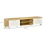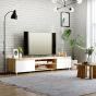 - AMPLE STORAGE: Features one spacious 200cm tabletop, two open shelves and two side drawers with flip door, which provides plenty of room for your TV, media devices, controllers and more. For TV sizes no larger than 90".