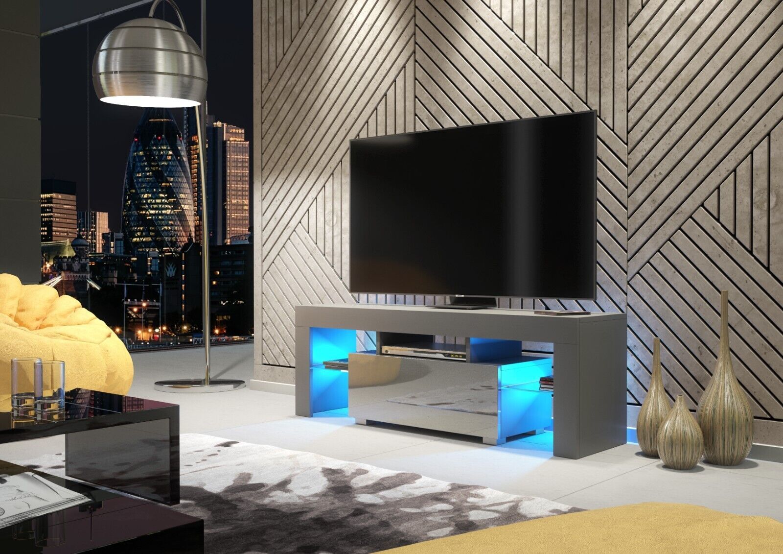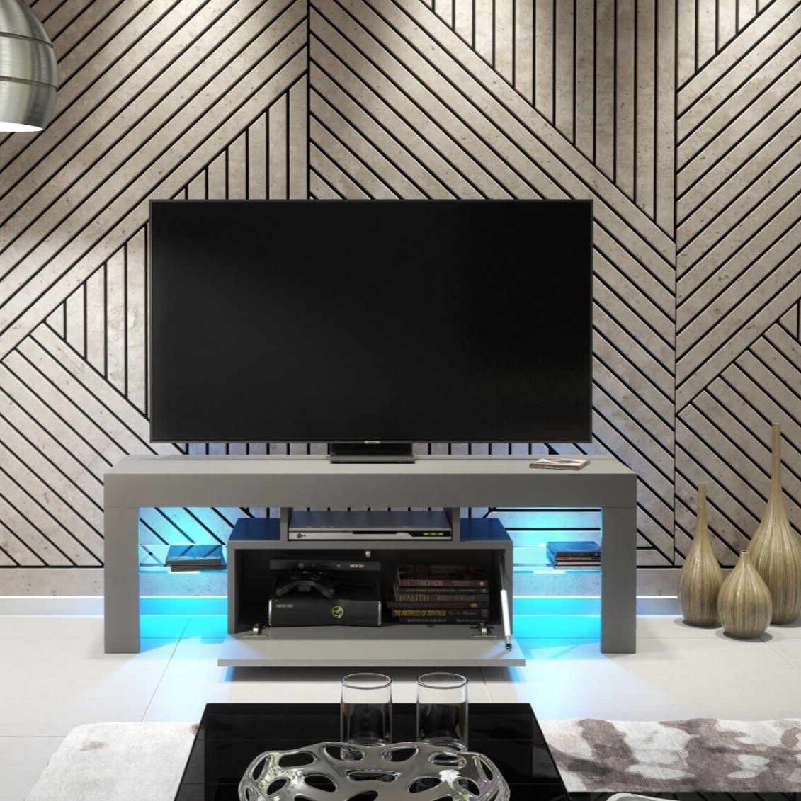 Modern TV Unit with Free LED Lighting and Ample Storage 130cm - Dark Grey