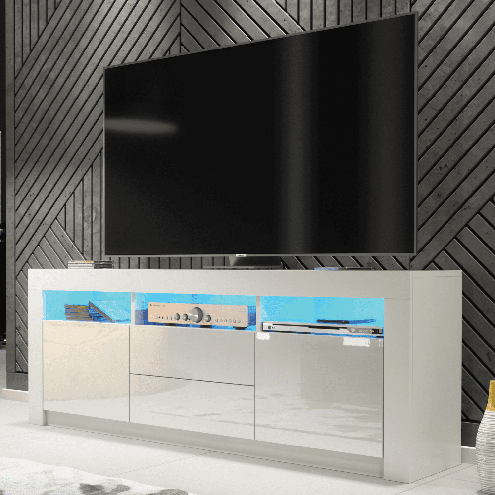Modern TV Unit with Spacious Storage Cabinet Stand and Free LED Lighting 160cm - White
