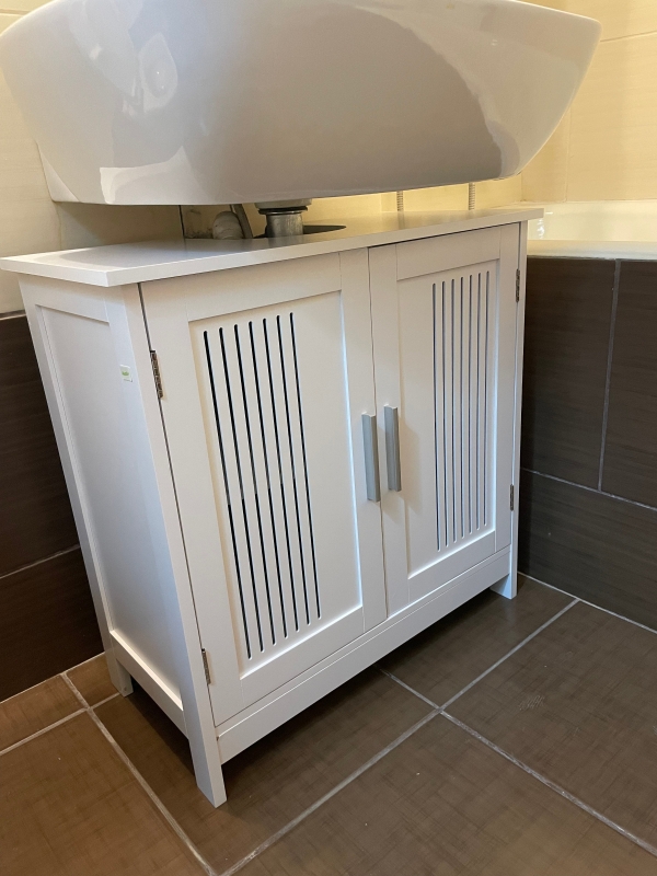 This under sink cabinet is great for freeing space in the bathroom, designed to fit under the sink. This cabinet has a simple and clean design, so it is suitable for practically any home style. Made from MDF, this piece is sturdy and durable for everyday use. Enjoy a more organised space with.