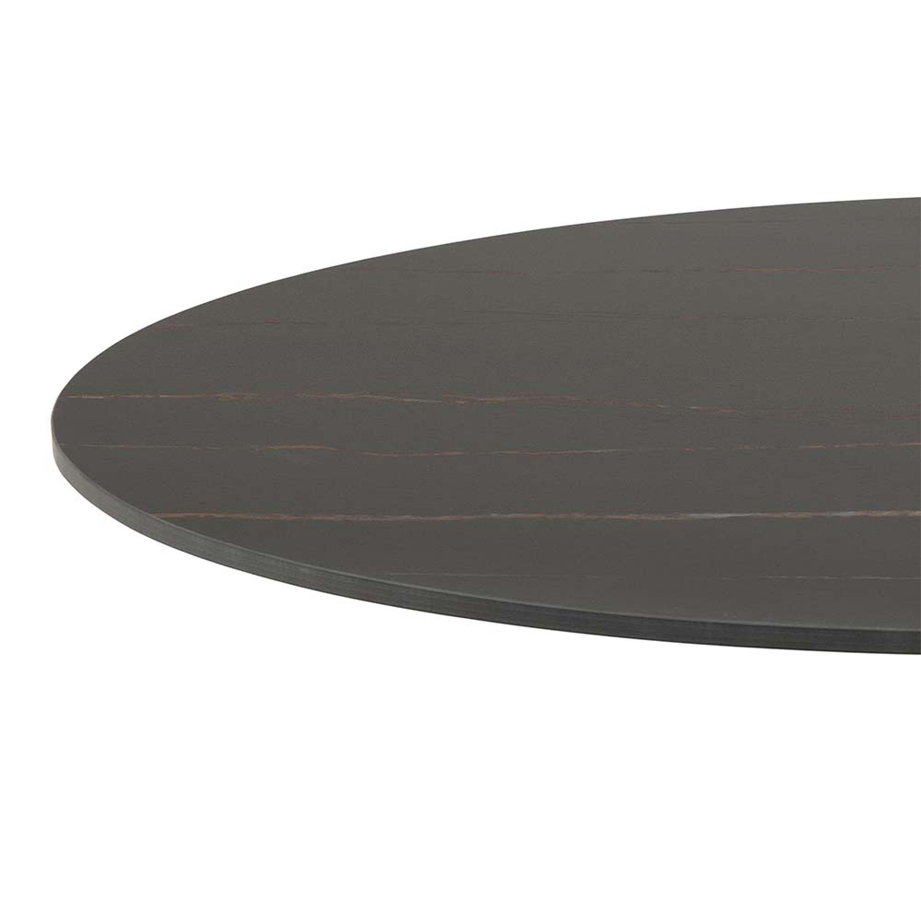 MONA Ceramic Round Dining Table in Black Included 4 Dining Chair in Light Grey