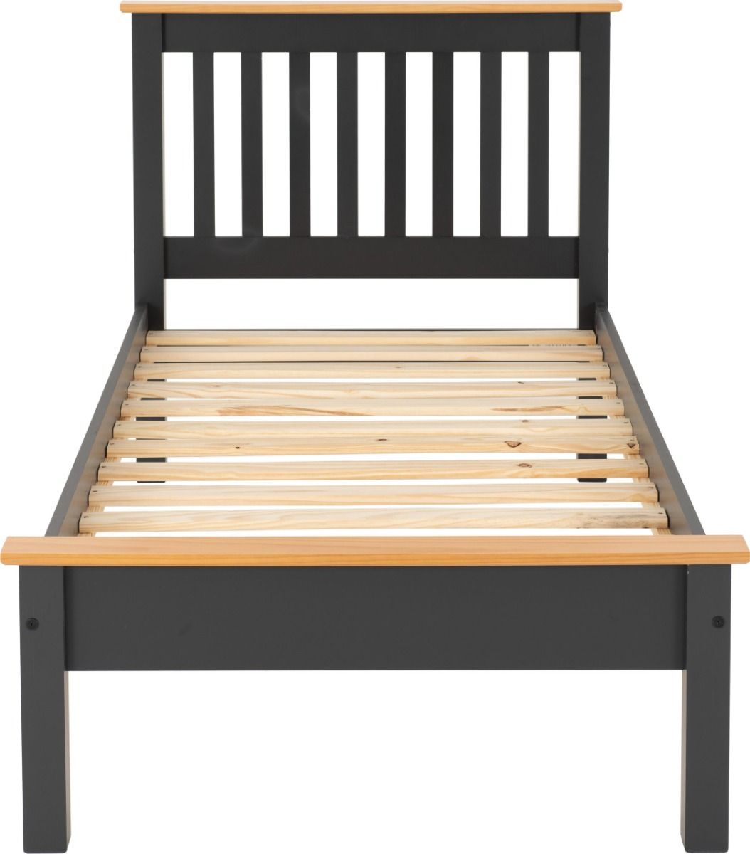 The Monaco 3' Bed with Low Foot End in Grey/Oak Effect finish offers a stylish and versatile furniture solution. Constructed from high-quality pine slats and MDF frame, it features a sturdy construction, comfortable design, and ample storage space. With its unique grey and oak effect finish, it adds a touch of elegance to any bedroom. Home Done Furniture offers a large stock of this range, ensuring timely delivery and installation.
