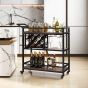 MONEAN 3-Tier Bar Cart Serving Cart w/Wine Racks and Glass Holders-Walnut