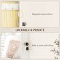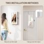 2-in-1 functionality: this jewelry cabinet features a 27. 3 cm mirror, allowing you to select, try on, and store your accessories all in one place. Perfect for saving space and adding convenience. Complete organization: the jewelry armoire offers a well-arranged interior with 80 slots for earrings, 40 holes, 12 large hooks, 12 small hooks, 65 ring slots, and 2 shelves. Keep everything tidy and tangle-free. Lock and privacy: equipped with a magnetic door and key lock, this wall-mounted jewelry cabinet keeps your valuables secure and out of reach from prying hands. Versatile installation: mount it on the wall or hang it over the door with the included hooks. Both options help maximize your space without sacrificing style, whether in your bedroom, bathroom, or dressing room. Durable material and elegant finish: made from mdf with a soft velvet-lined interior, this wall jewelry mirror protects your pieces from scratches and matches any decor style