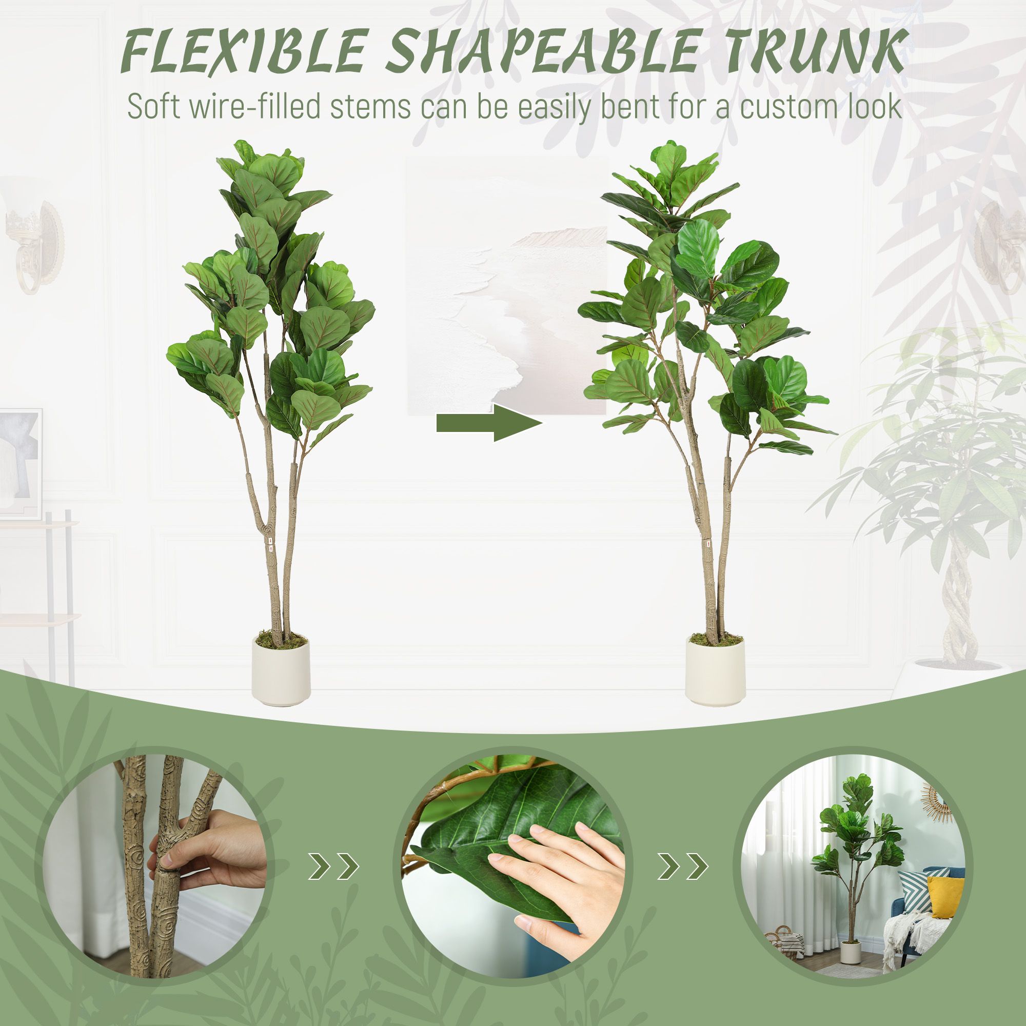 Lifelike design: leaf veins, realistic ridges and a textured trunk - artificial ficus looks like real greenery, without the upkeep. 98 leaves for a voluptuous look. Shapeable branches and leaves: metal for a custom look that suits your space. Whether in the living room, office, or entryway, this fake tree adds a personalised, refreshing touch to any setting. Cement-weighted plant pot: white pot holds the artificial tree standing steady. Cement filled to help minimise it tipping over; plus everything you need in one package. Minimal maintenance: plant keeps green and beautiful, without watering or sunlight. Lifelike fake plant provides plenty of greenery all year round. Dimensions: 65 W x 50 D x 150 H cm. Pot size: dia. 18 cm x 17 H cm. No assembly required