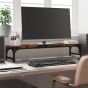 This practical monitor stand with a minimalist design is practical to keep your monitor in a comfortable place. Durable material: The engineered wood is of exceptional quality with a smooth surface and features strength, stability and resistance to moisture.Ergonomic design: Raises your monitor up to eye level for a comfortable ergonomic viewing experience, relieving the strain on the neck, shoulder, and back and enhancing work efficiency.Additional storage: The storage space underneath this computer stand can accommodate your keyboard, DVD player, gaming console, streaming device, receivers, media carriers, notebooks, pens and more.Adjustable legs: Four adjustable feet with plastic pads keep the computer monitor stand balanced on uneven ground and increase stability.