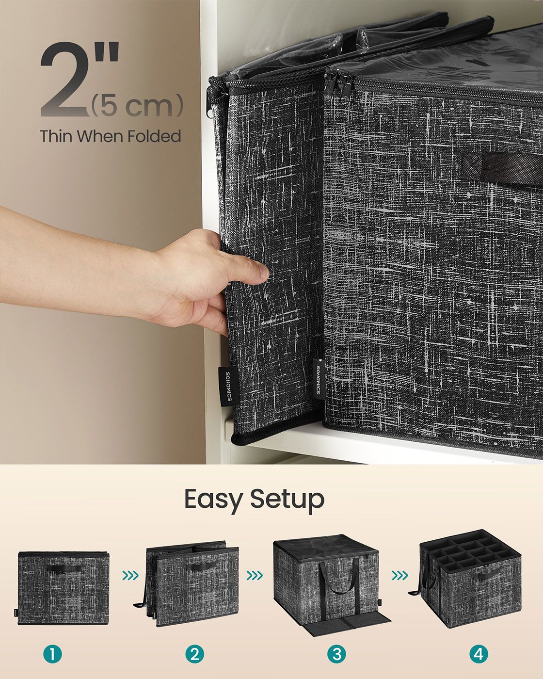MONRIA Shoe Organiser - 16 Pair Fabric Bins Small Sized Shoe Organiser - Black