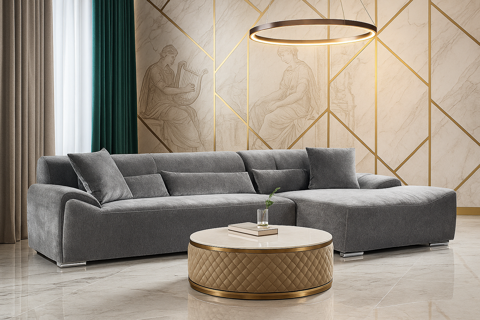 MONTELA Fabric 3 Seater L Shaped Corner Sofa - Charcoal - Right Hand Facing