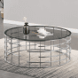 Monterey Circular Coffee Table Clear Glass Top, Silver Stainless Steel Base - Modern Elegance