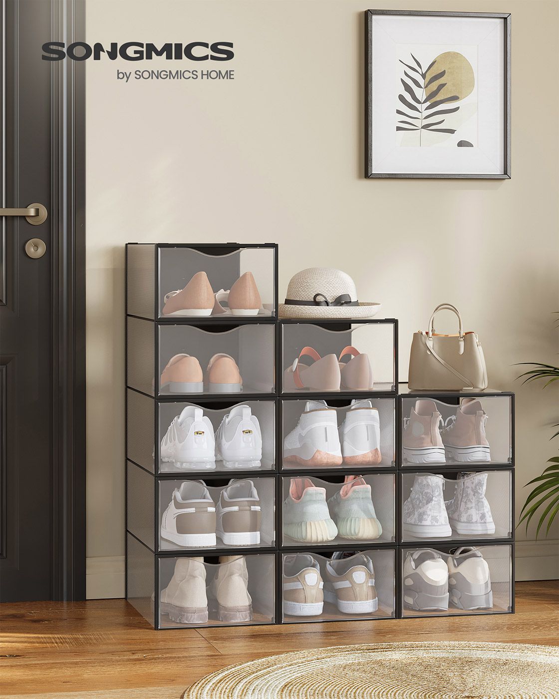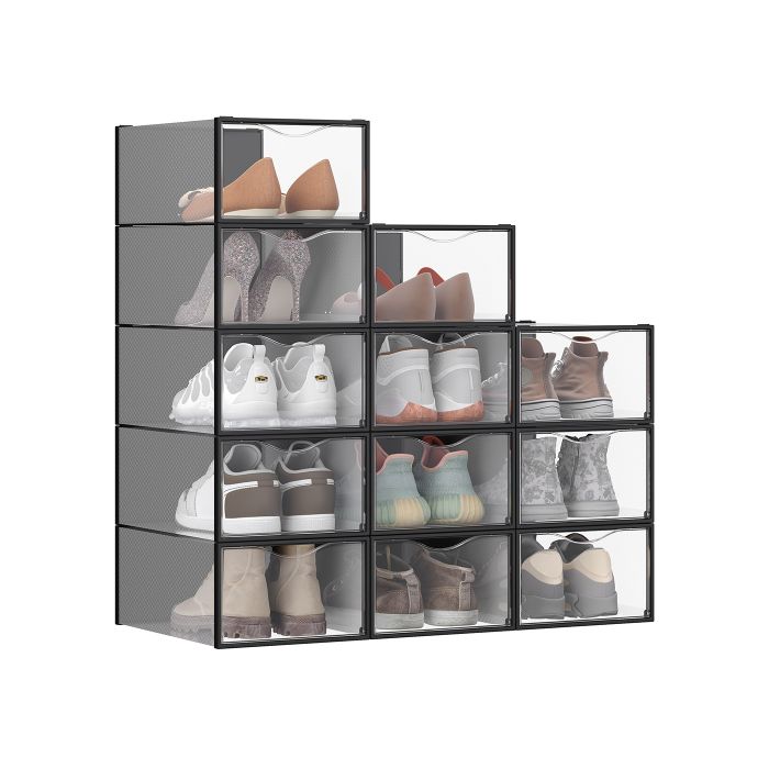 MONVAS Shoe Box - 12 Pack Storage Small Sized ShoeBox - Black