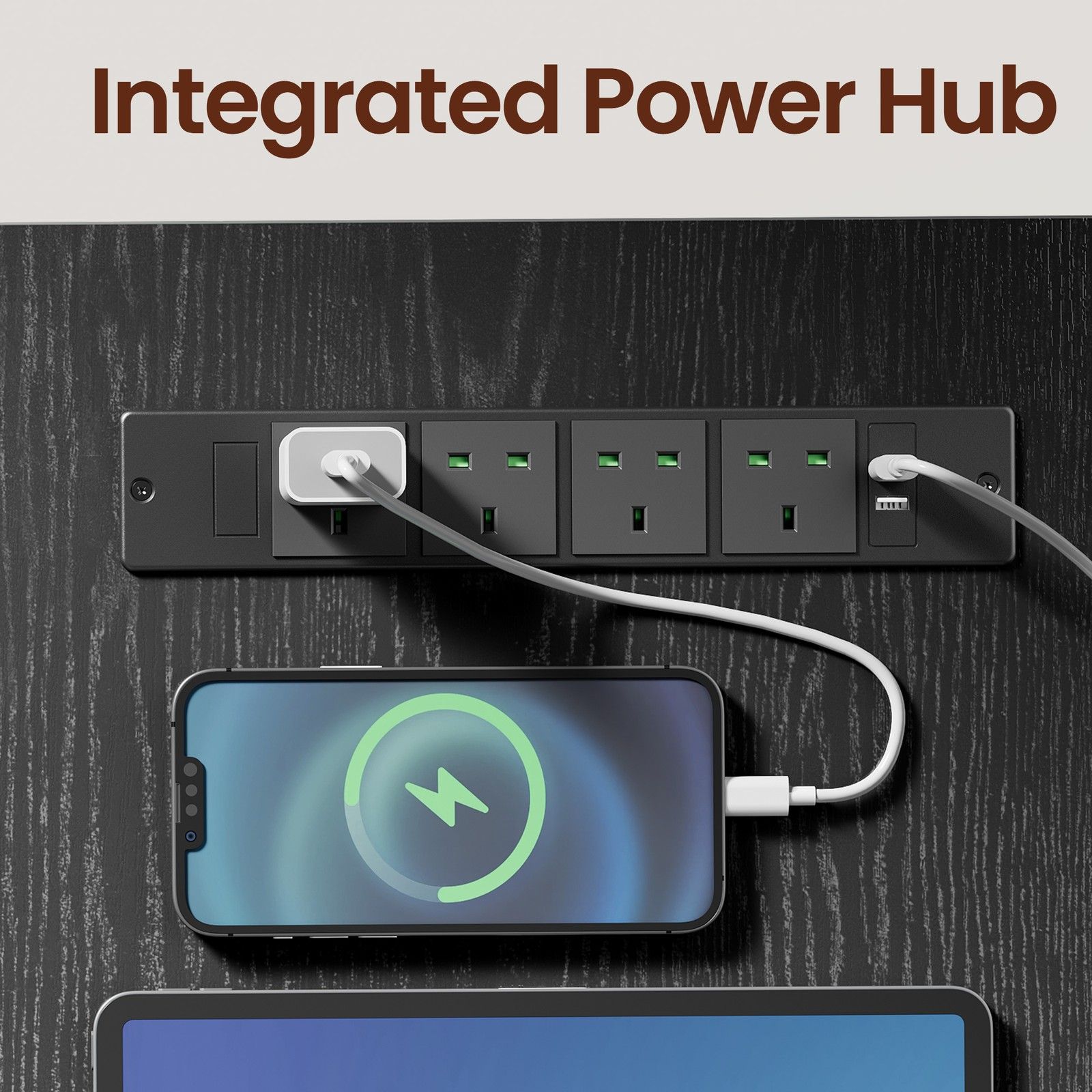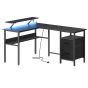 MOORCREST Corner L Shaped Office Desk with Power Outlet - Black