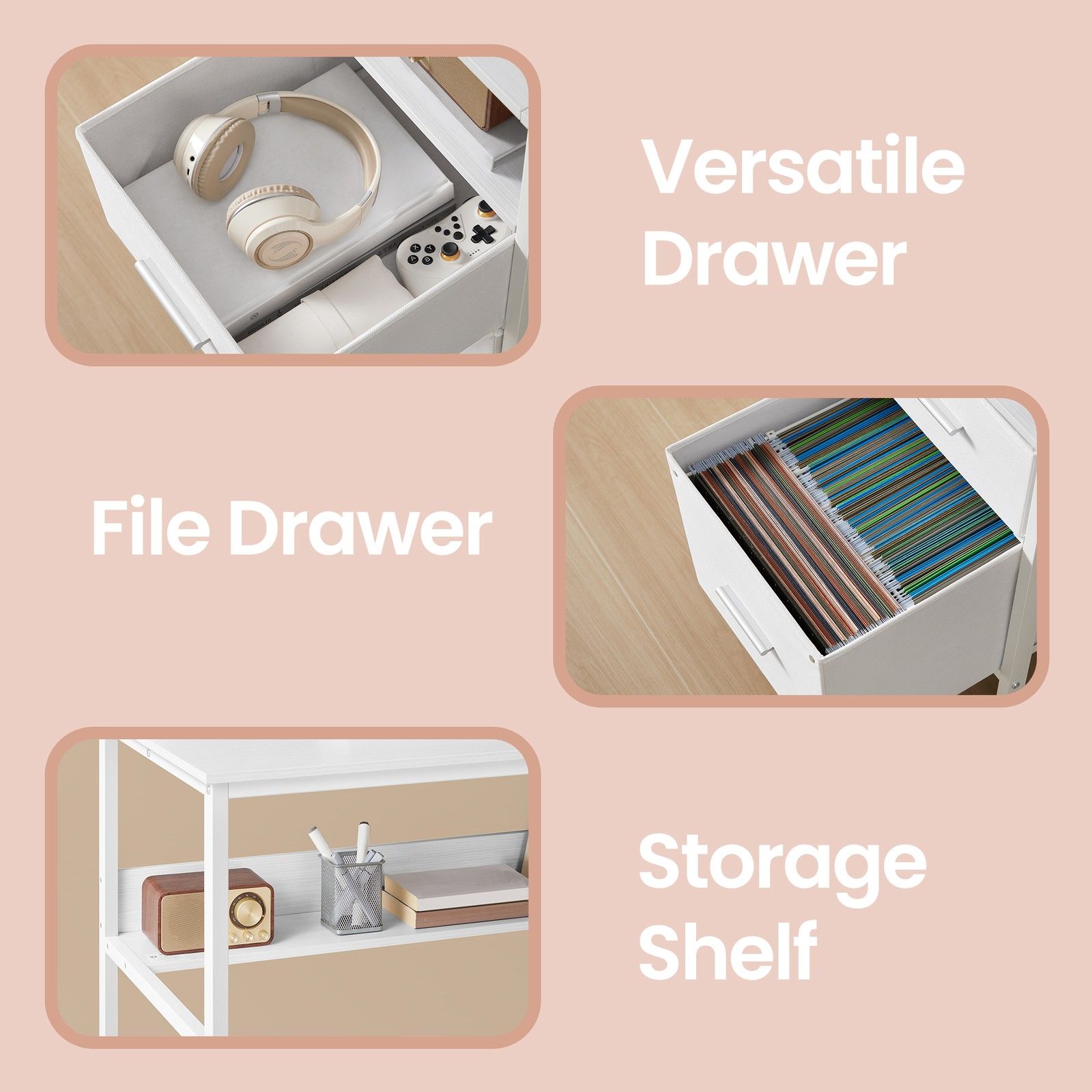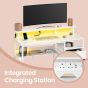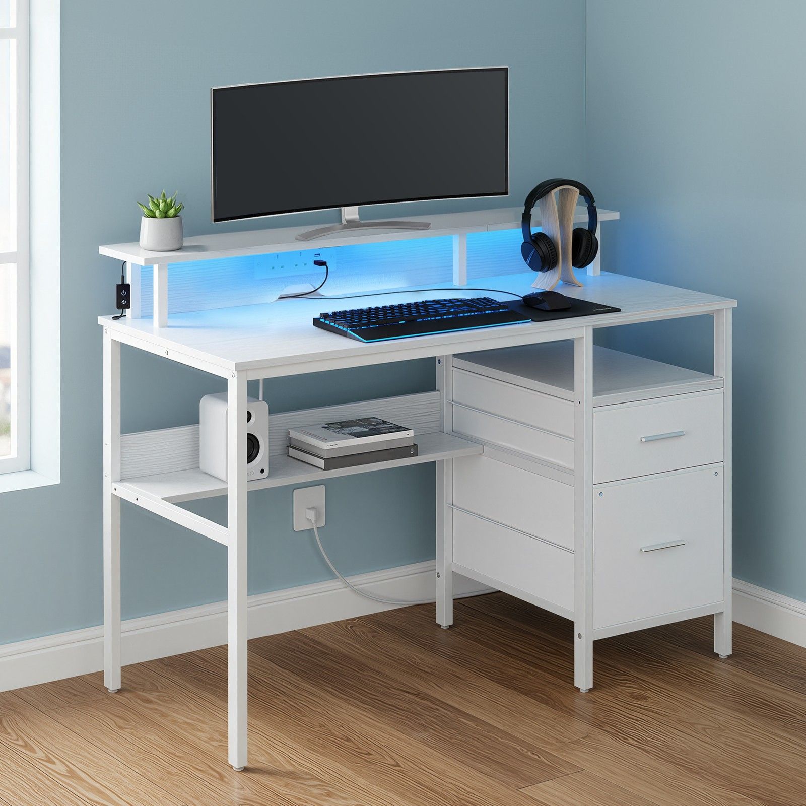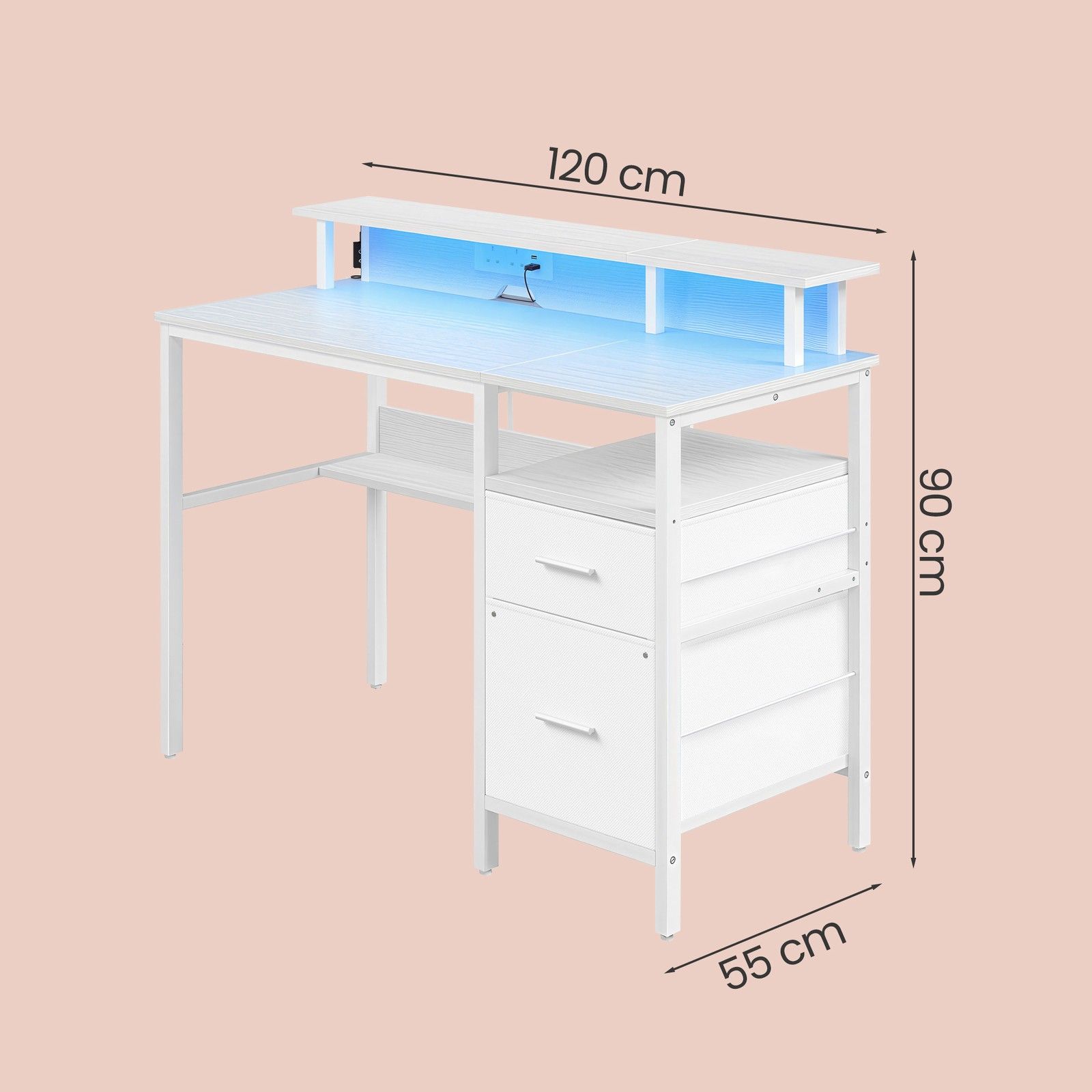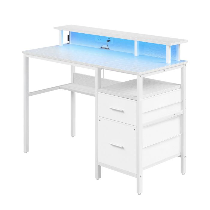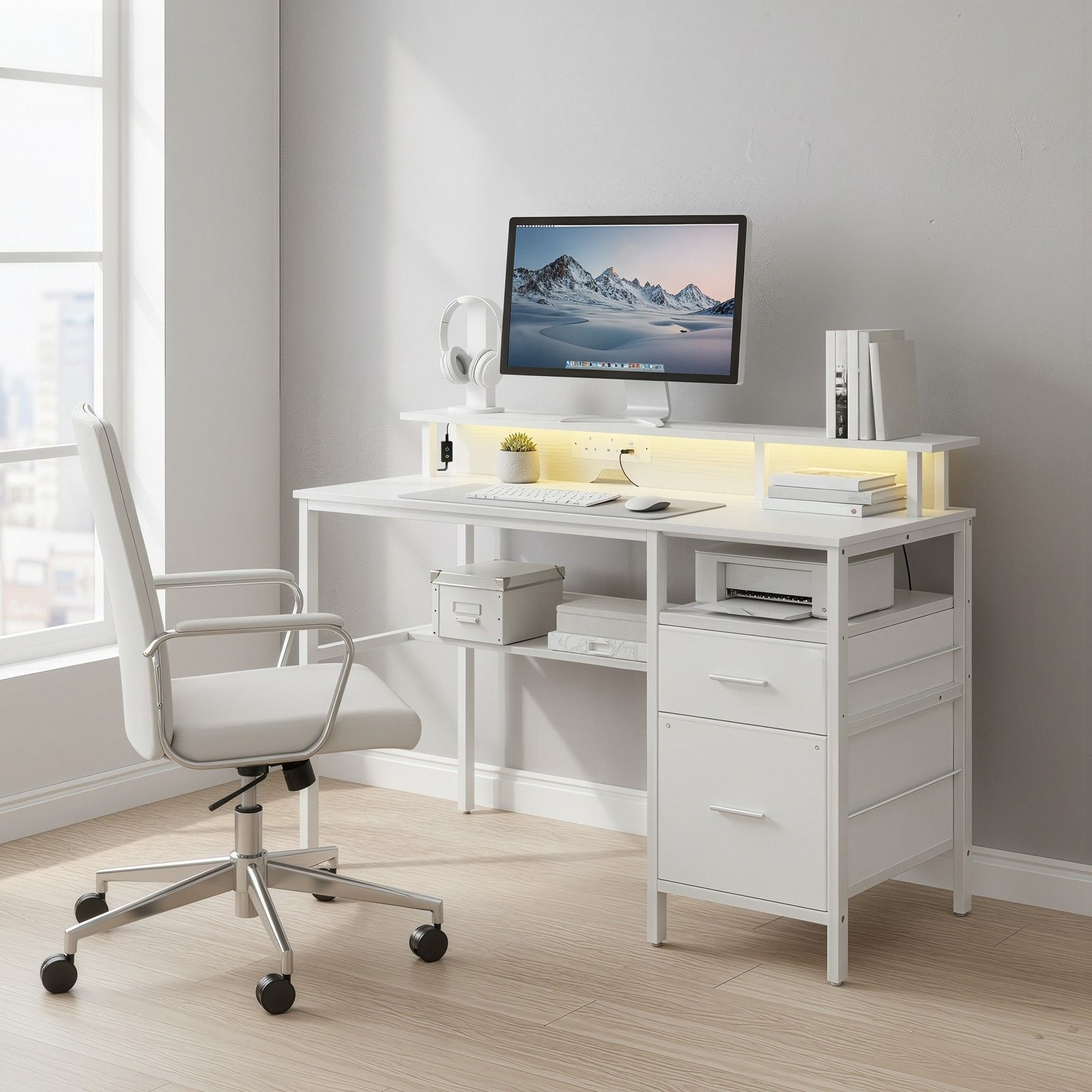 MOORCREST Office Computer Desk with Moniter Stand and LED Lighting - White