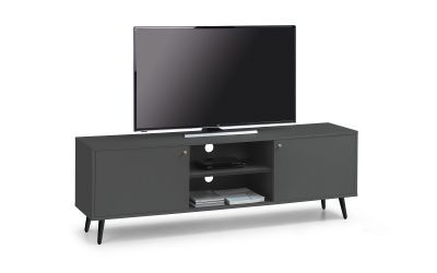 A subtle, yet striking linear pattern creates the eye-catching slickness of the Moritz TV Cabinet. Featuring two shelves with two holes for cables to sit neatly through the back of the cabinet, and two grey cupboard doors, with simplistic, yet stunning gold handles. The Moritz TV Cabinet is available in white or grey, offering great functionality that looks good with any modern décor.