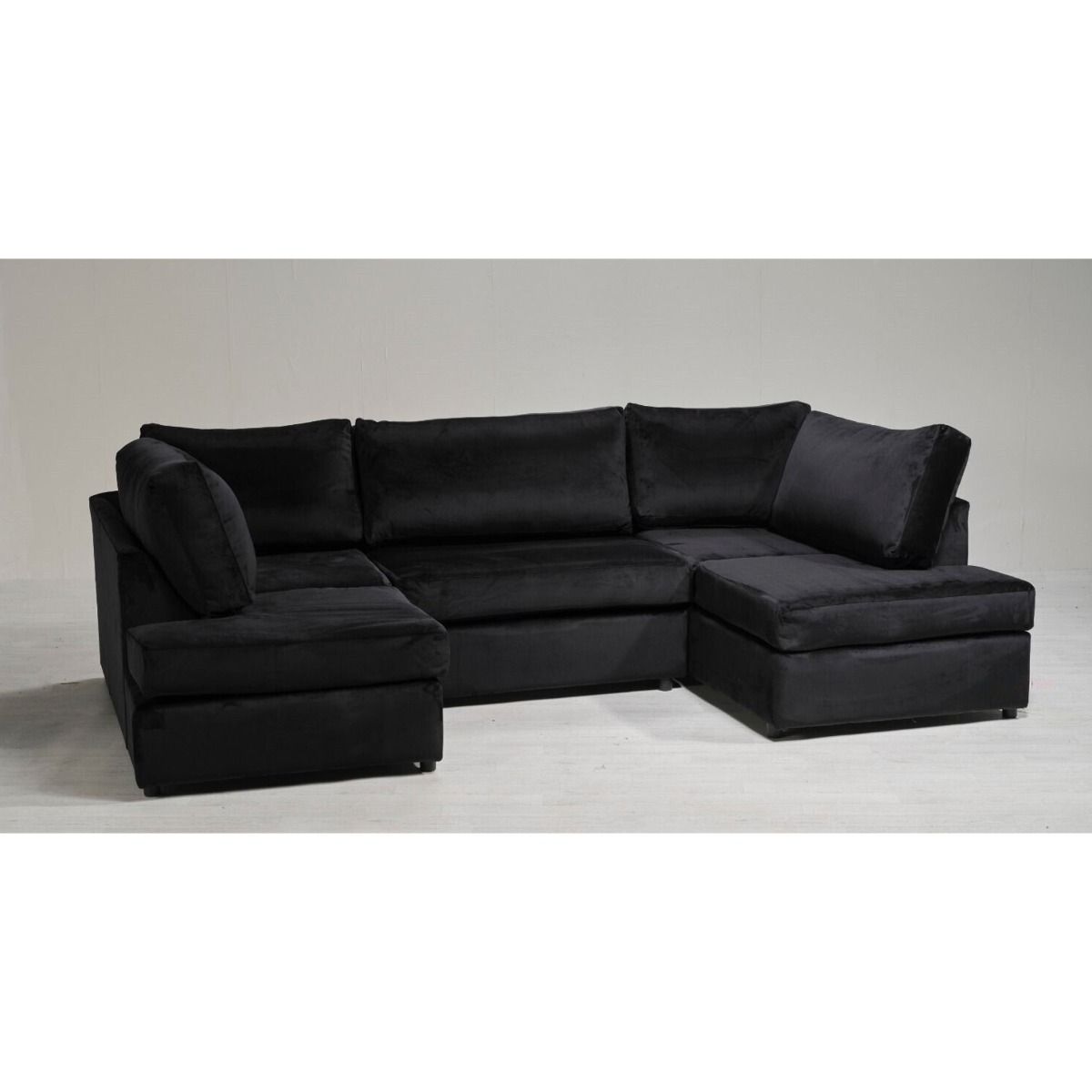 Elevate the ambiance of your home or living room with the exquisite U-Shape Plush Velvet design. Its plush cushions and gracefully curved arm style create an inviting space for relaxation and entertainment. Available in a variety of delightful colors, this sofa allows you to effortlessly complement your home's decor.