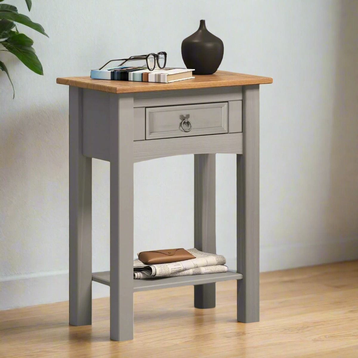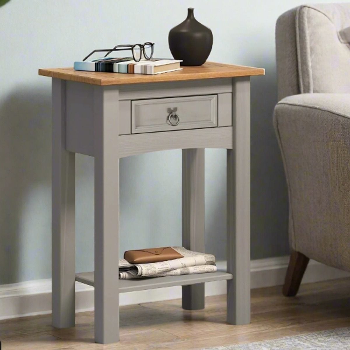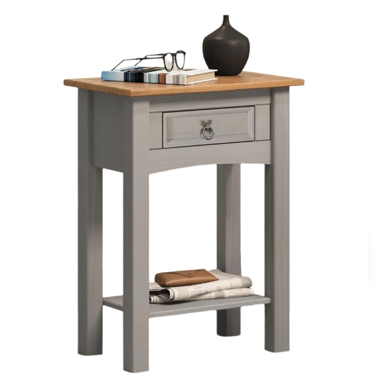 You're reviewing:MORVANE Side Table Wax Pine with Metal Fittings - Grey