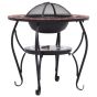 This fire pit will make a decorative and atmospheric addition to your garden or patio decor, while also keeping you warm when it gets colder in the evening. Made of steel, the fire pit bowl is excellent in absorbing and radiating heat. It can be used to burn dry wood, logs or charcoal. The fire pit is supported by a four-leg stand. The included safety mesh allows you to watch the burning fire, and encloses the fire for safety as well as preventing sparks and debris flying out. The poker tool can be used for both removing the mesh cover and rearranging the logs or coal. Additionally, the fire pit table can also be used as a barbecue. Its round ceramic surface offers a perfect place for drinks and roasting supplies. Please note this product is not suitable to be left outside in cold condition.
