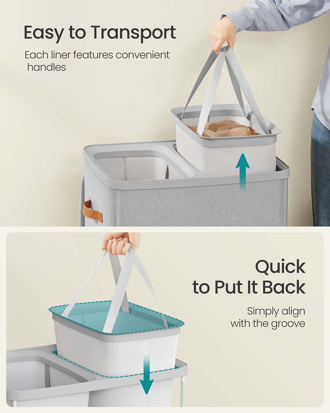 MOSSFORD Laundry basket with dual compartments and removable liners - Grey