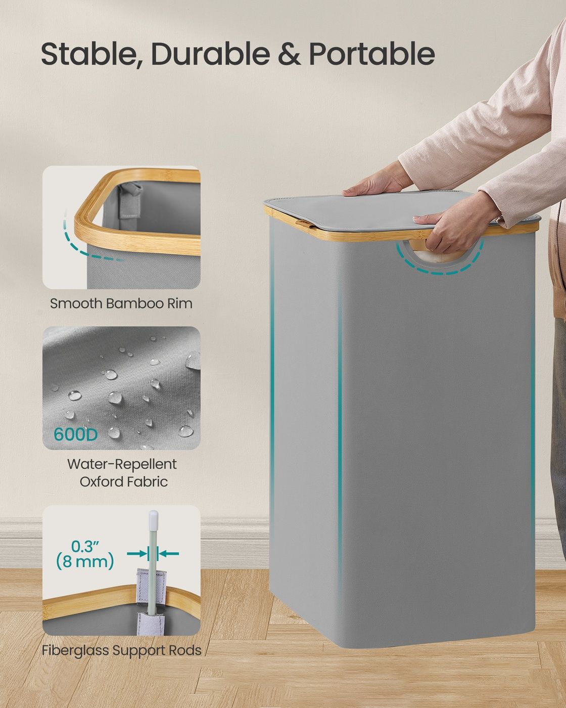 Material: 600D Oxford Fabric, Bamboo, Fiberglass Rods, Cardboard